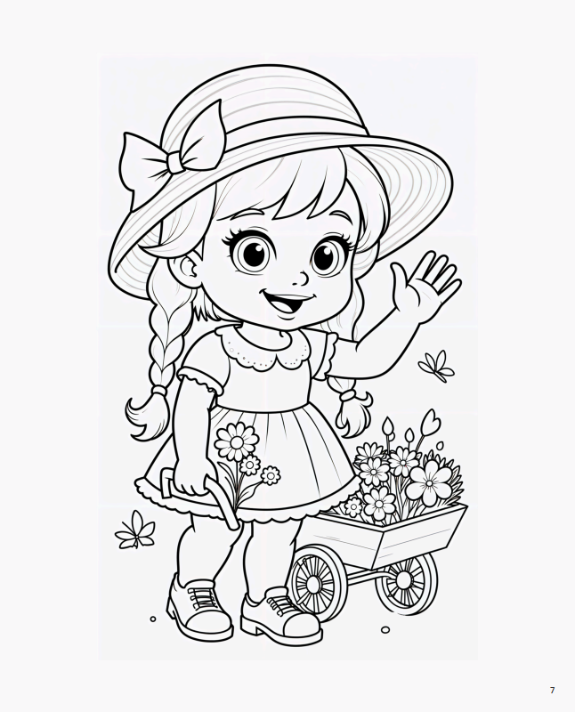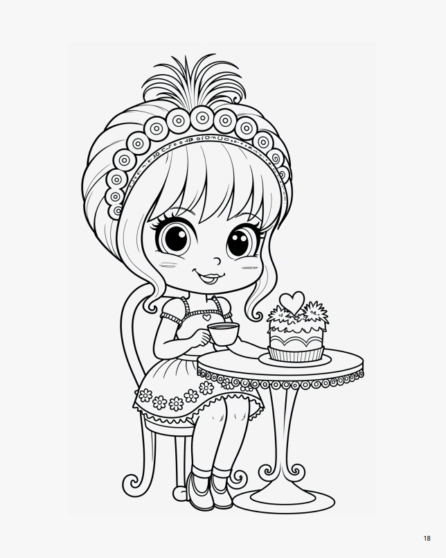Розмальовка «Маленькі красуні» — це справжнє свято кольору, стилю та фантазії. На 25 сторінках діти знайдуть дівчаток у сукнях, капелюшках, прикрасах і гарних зачісках.