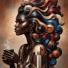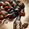 Introducing the Regal Tea Time Collection: an exquisite assembly of wall art that celebrates the majesty and elegance of regal African women. Each piece features a captivating profile view of these serene and confident figures, their appearance is a testament to their grace and strength. Clad in attire that dances between the realms of organic and digital, the geometric-patterned fabrics come alive in three-dimensional splendor, wrapping these queens in an aura of sophistication and innovation.
