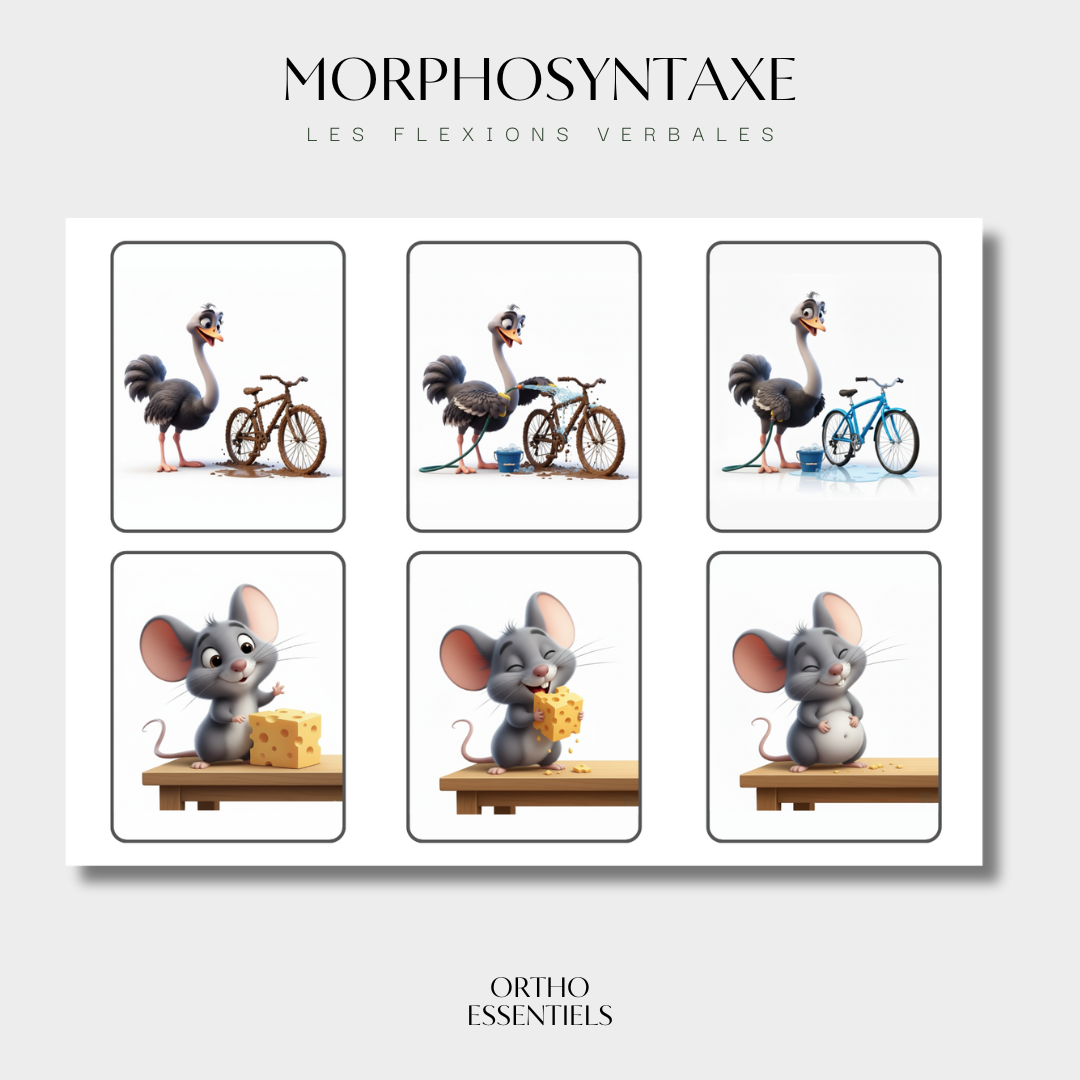 Il permet de travailler la conjugaison et la compréhension du temps verbal à travers des scènes illustrées simples et parlantes.