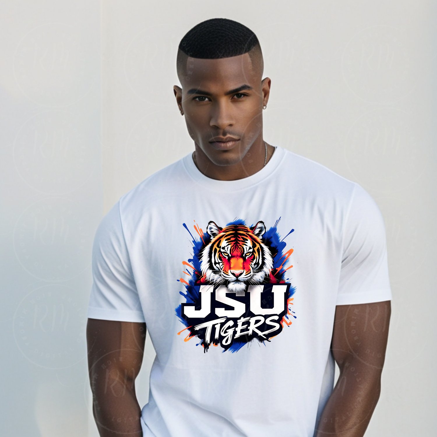 This high-resolution PNG features a powerful tiger mascot, with “JSU Tigers” lettering — perfect for sublimation, t-shirts, tumblers, school spirit crafts, and more.