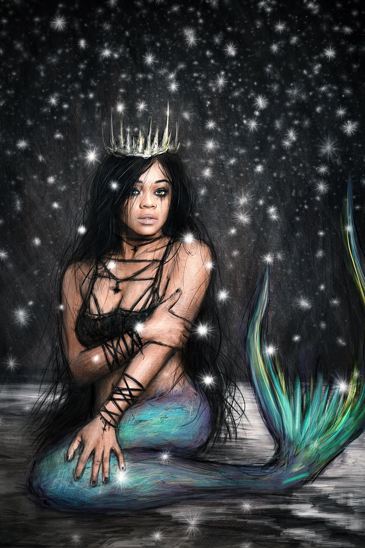 Full resolution digital painting image download of a mermaid by Justin Gedak.