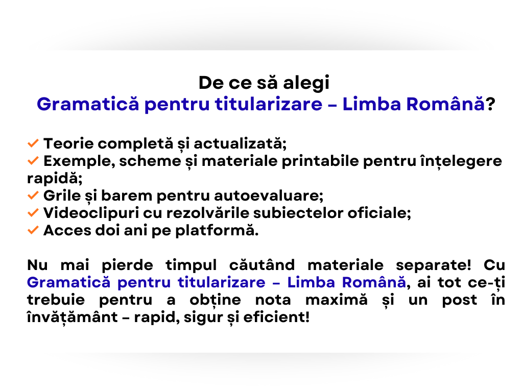 ✓ Analiză detaliată a ultimelor 5 subiecte oficiale de titularizare la gramatică.