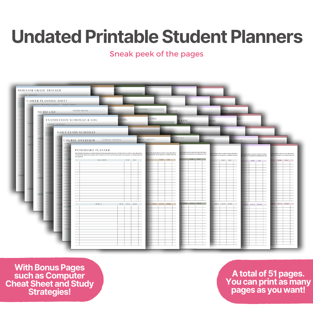 The Ultimate Student Planner (6 Colors) - Undated and Printable -