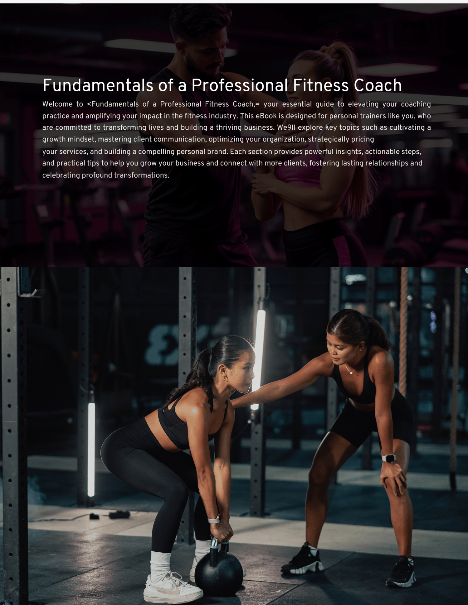 This all-in-one series is designed for fitness professionals who are ready to elevate their career, optimize their workflow, save time, become better professionals and turn their coaching into a sustainable, high-impact business.