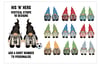 10 horizontal shirt designs (20 Gnomes included male and female)