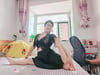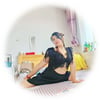 Inside the room, Carrie put down a pair of crutches and began walking using her hands and Polio legs.