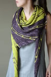 The shell pattern evokes the urban landscape of roads, rivers, and bridges, and the two halves of this asymmetrical triangle shawl are inverted in color.