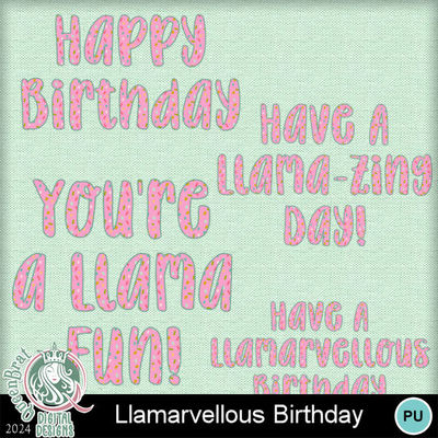 A llamarvellously cute birthday set with a llama theme. Includes word art and a monogram. Great for your birthday projects for kids or adults.