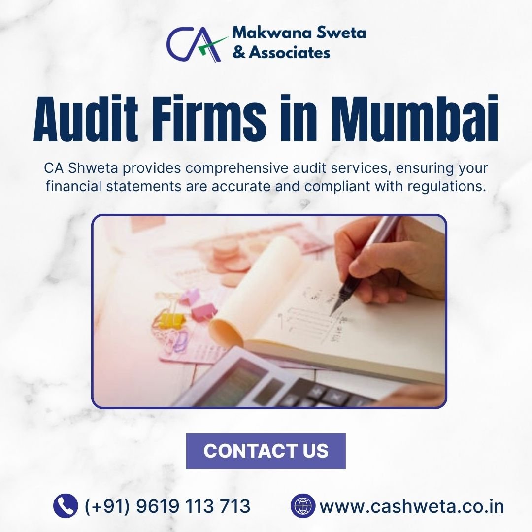 Looking for reliable audit firms in Mumbai? CA Shweta provides comprehensive audit services, ensuring your financial statements are accurate and compliant with regulations. Our experienced auditors give you peace of mind and transparency. Contact CA Shweta today for expert audit firms in Mumbai services!