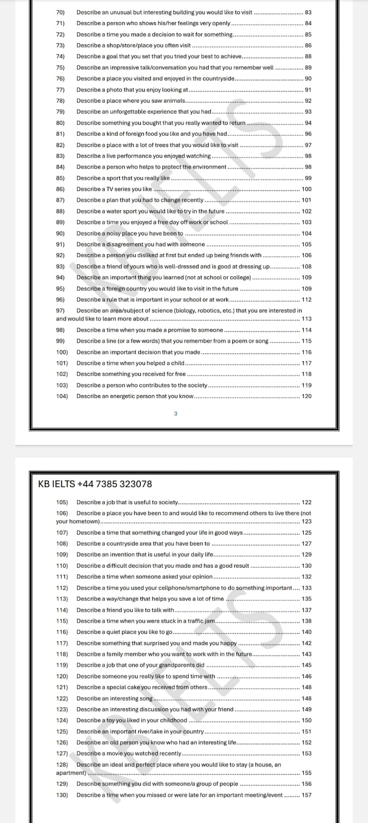 (2025 new Cue Cards) September to December (130 sample answers)