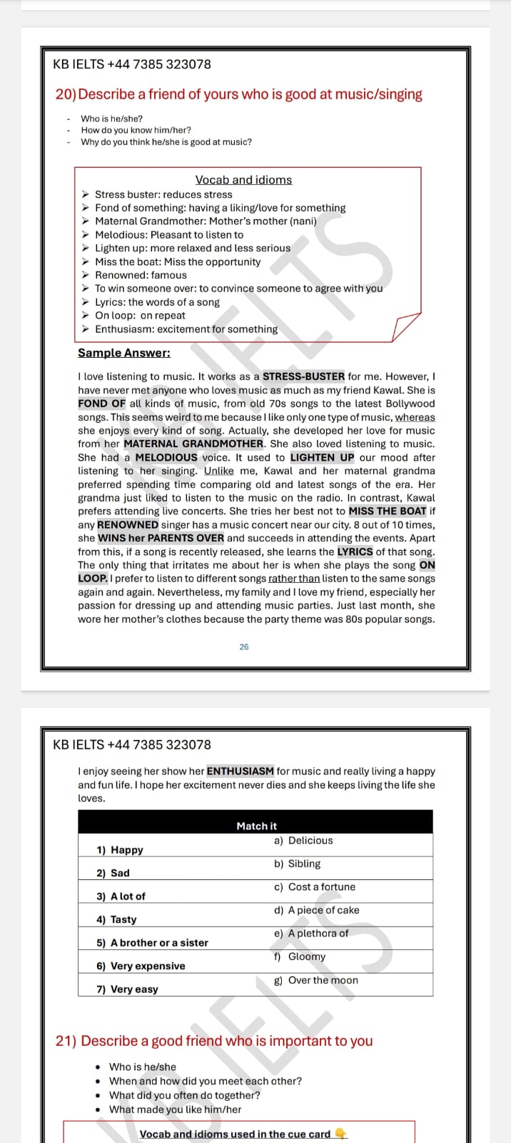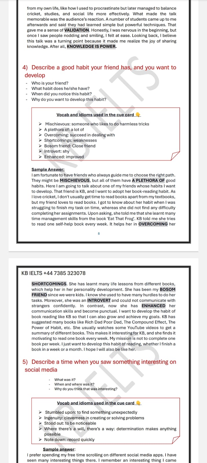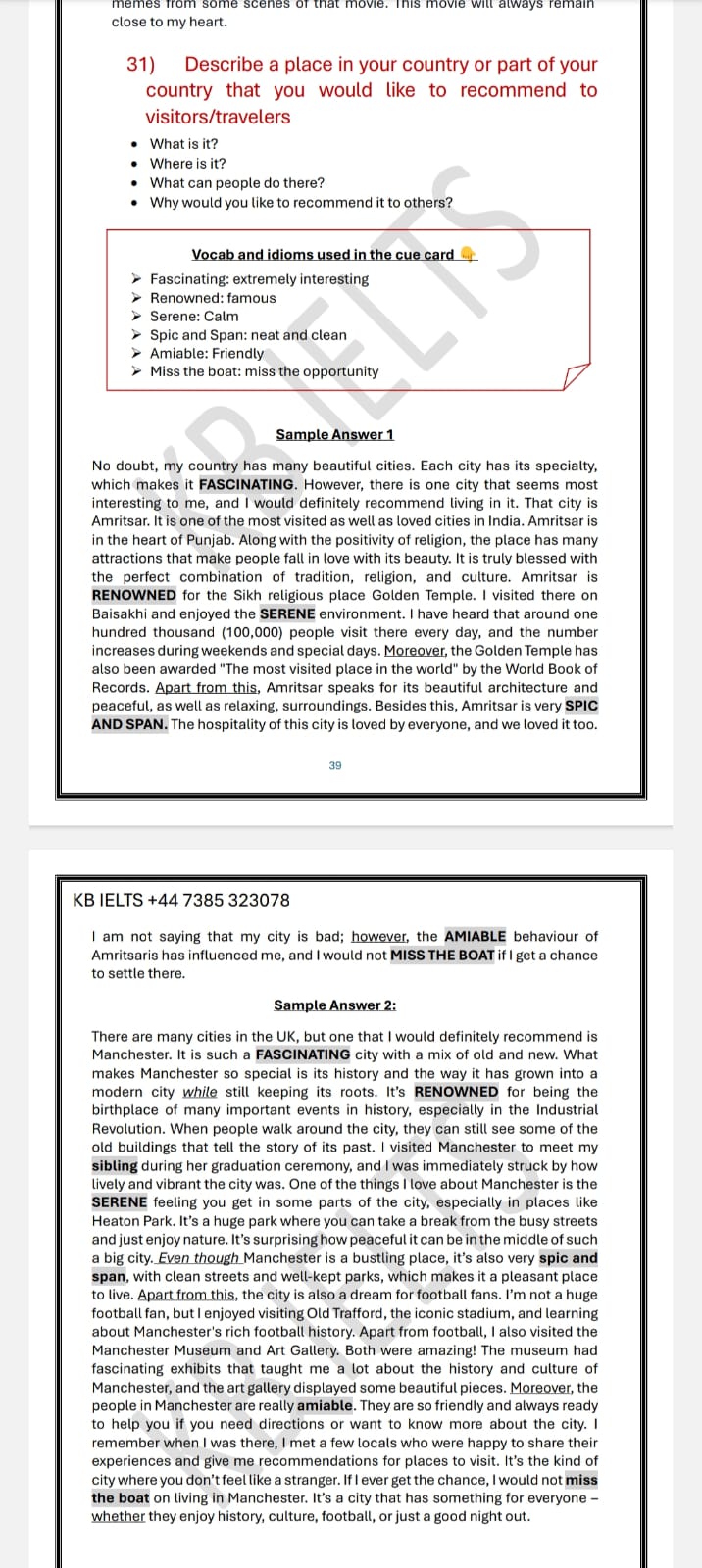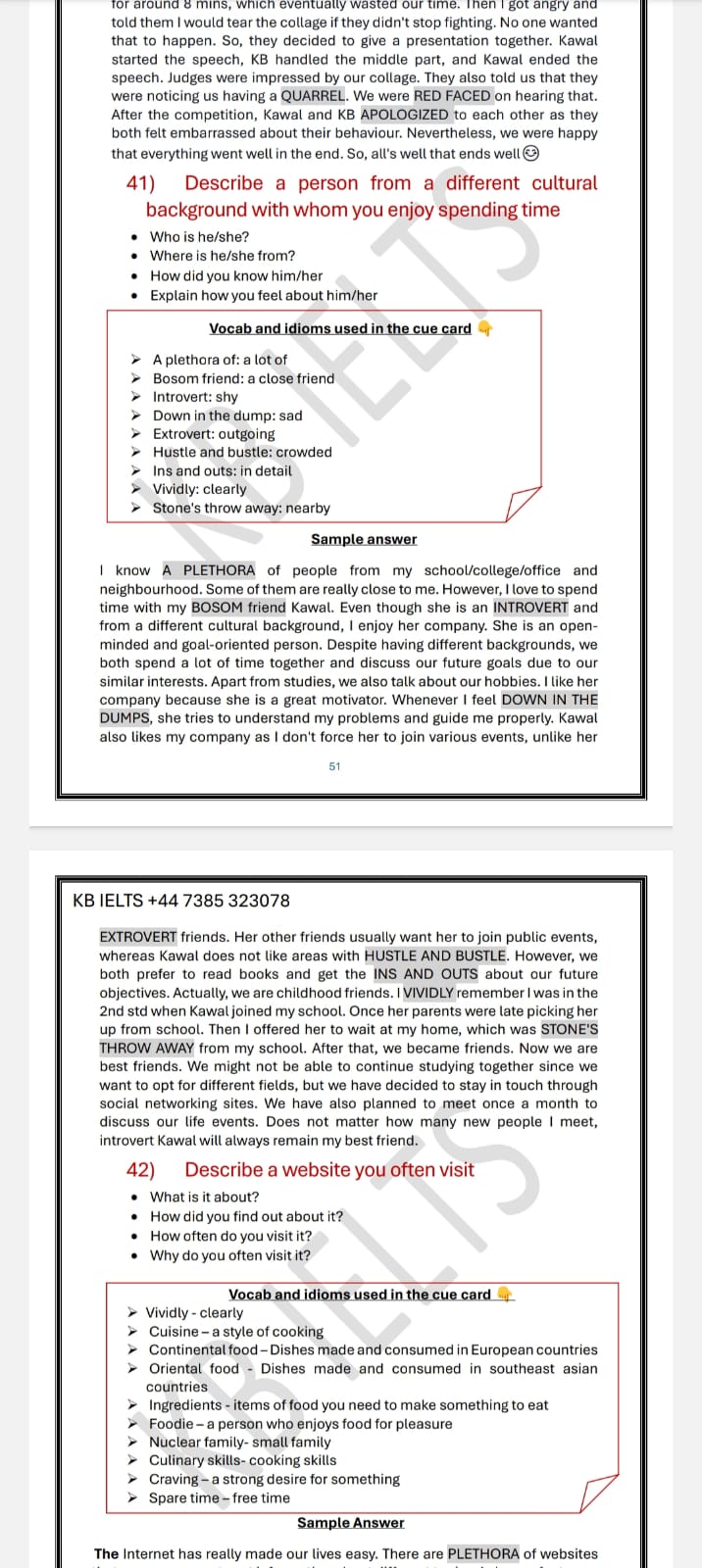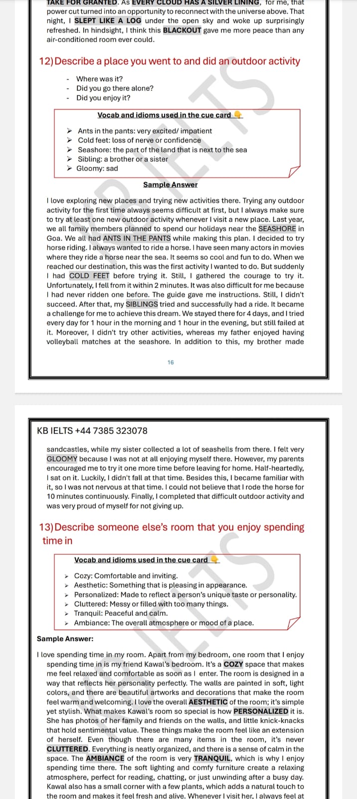 - Each sample answer includes vocab, idioms, and phrasal verbs so that you can easily learn new words