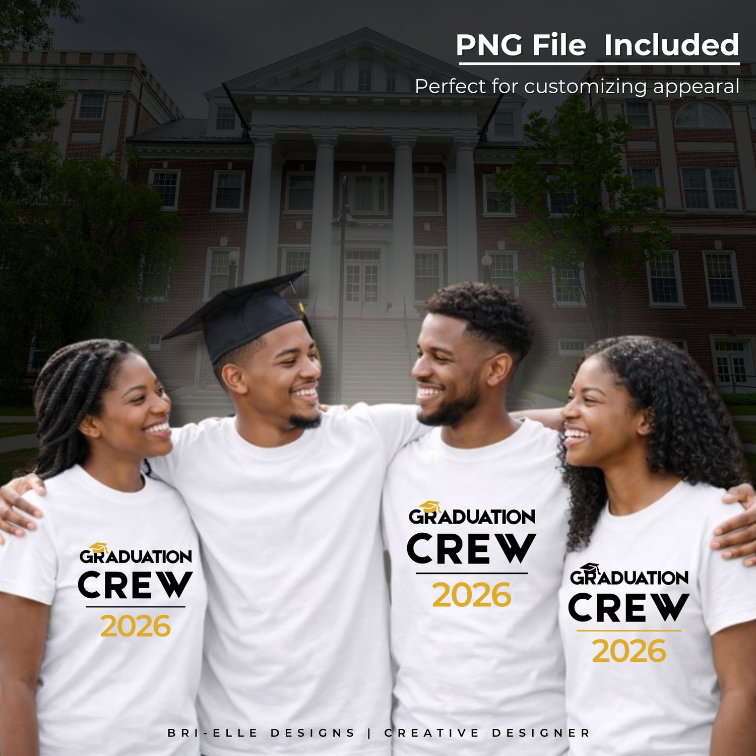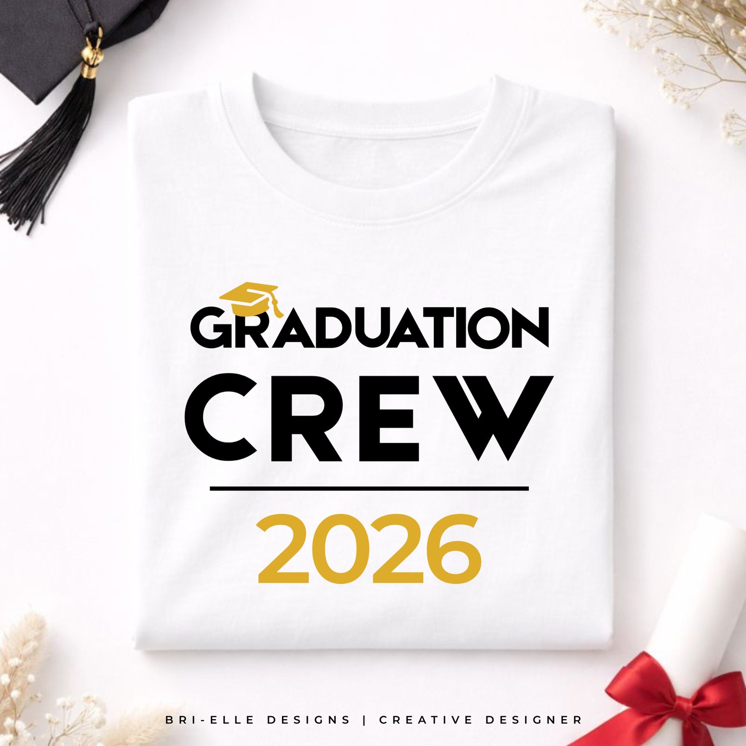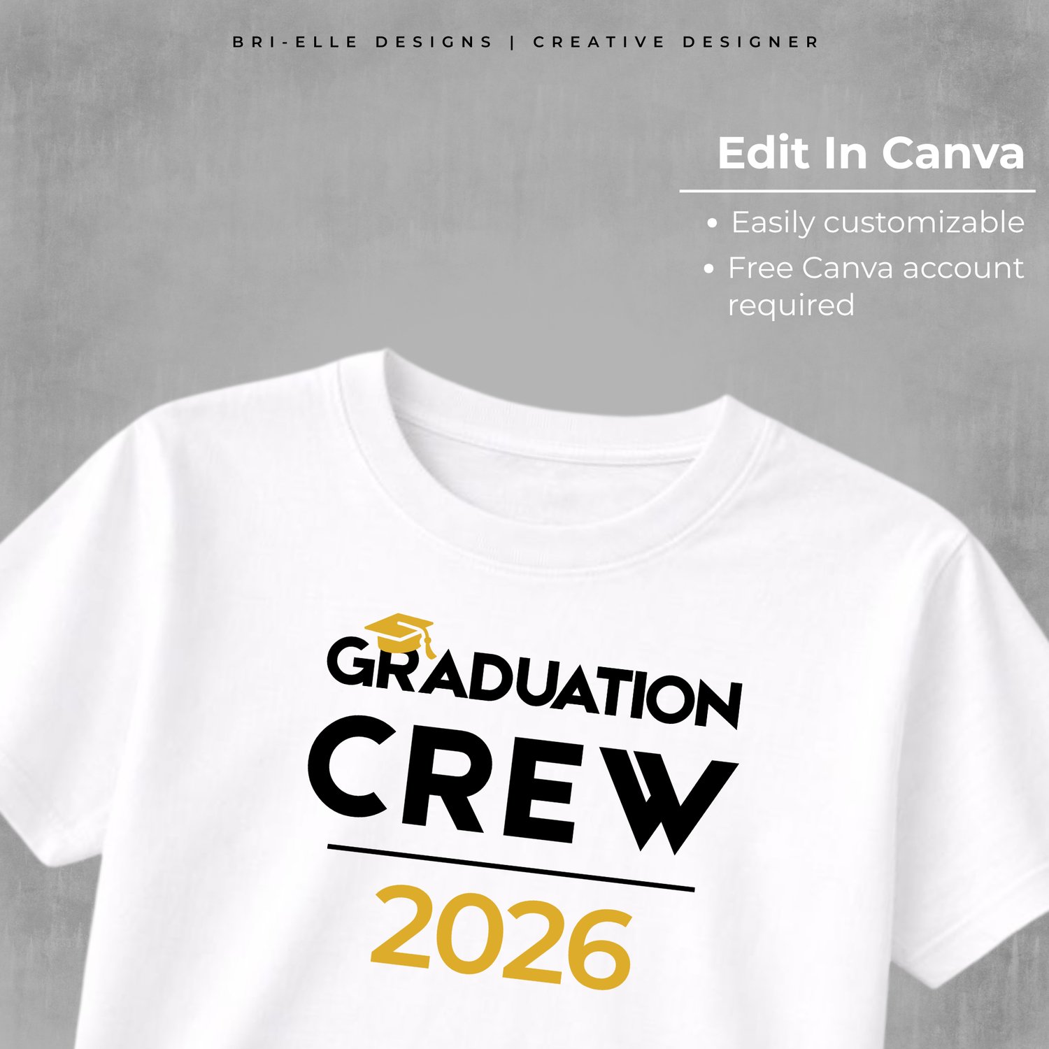 Graduation Crew 2026 Shirt Design | Editable in Canva | Black & Gold | Digital Download