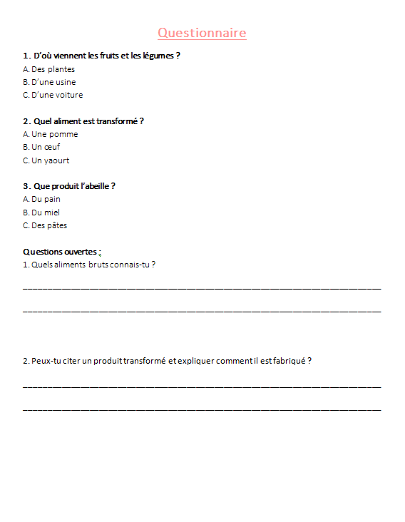 - Un questionnaire élÚve (QCM + questions ouvertes)
