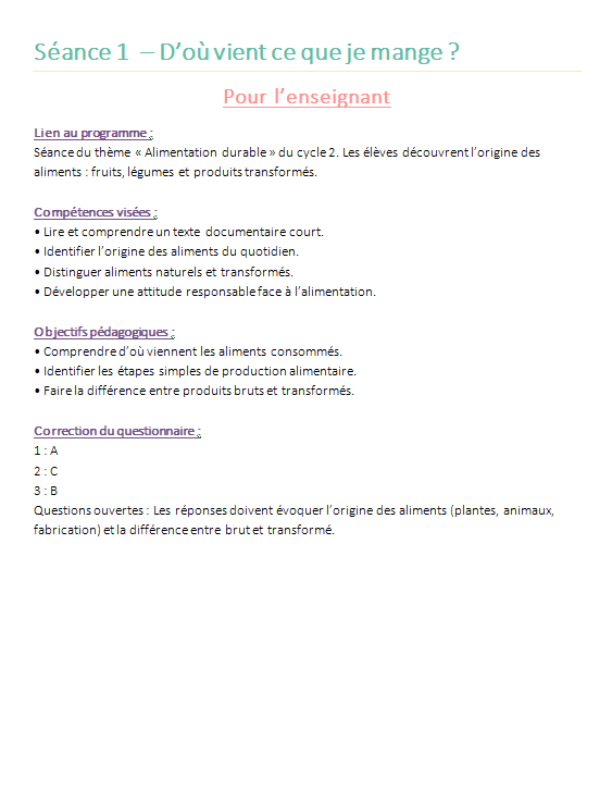 đ Objectif de la sĂ©quence : comprendre lâalimentation durable au Cycle 2