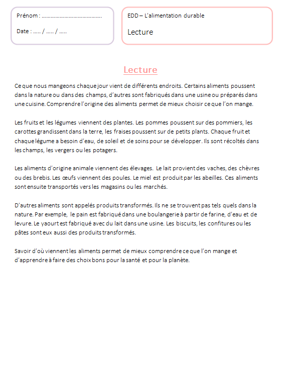 đ± SĂ©quence EDD Cycle 2 â Lâalimentation durable (4 sĂ©ances clĂ©s en main)