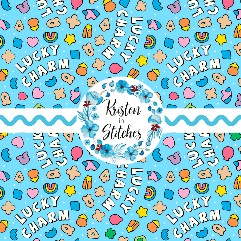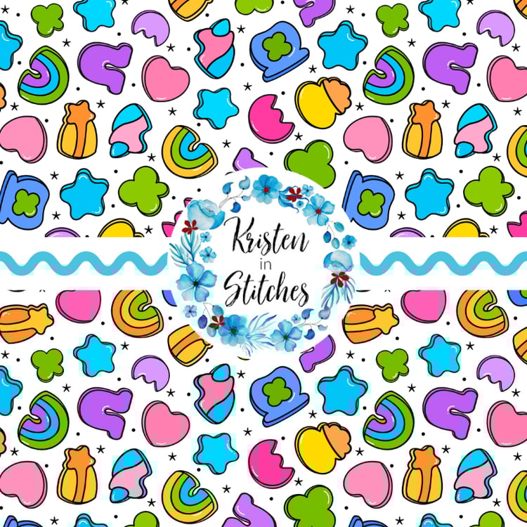Lucky charm marshmallows, with rainbows, stars, balloons, shamrocks and unicorns.