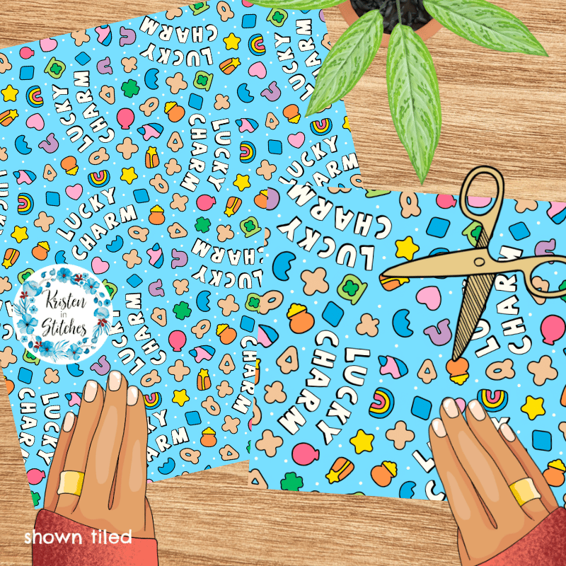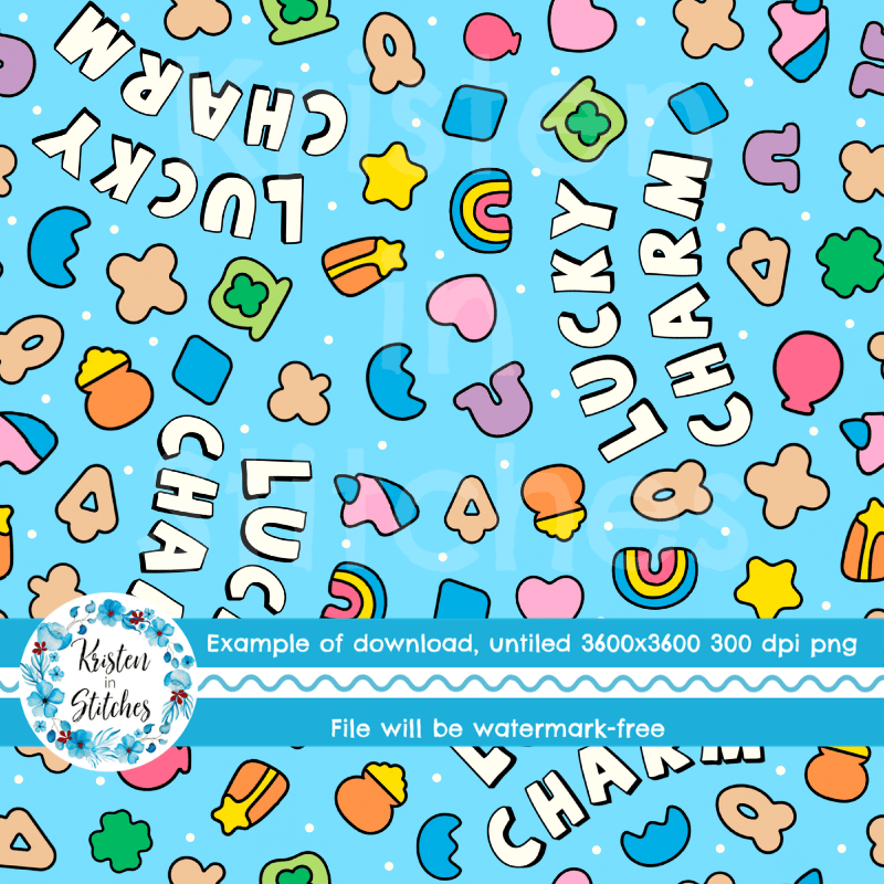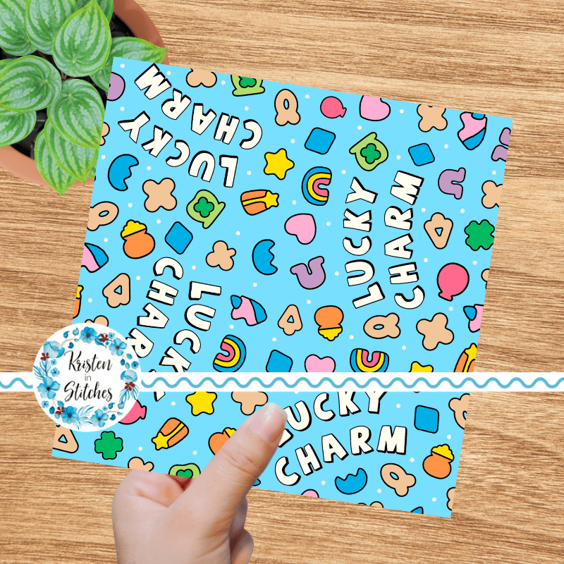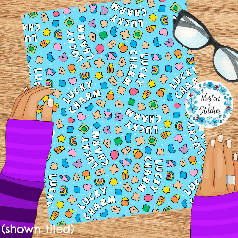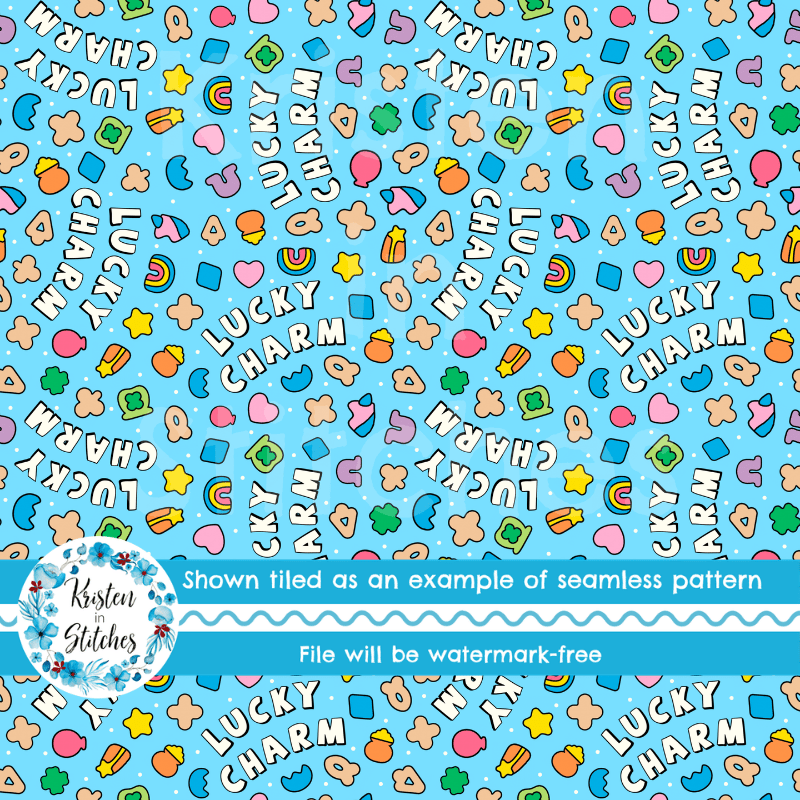 Lucky Charms Seamless Pattern, Saint Patrick's Day Good Luck Shamrocks and Rainbows