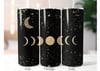 Black and Gold Glitter Galaxy Moon Phase Tumbler Wrap Design, Skinny Tumbler Wraps