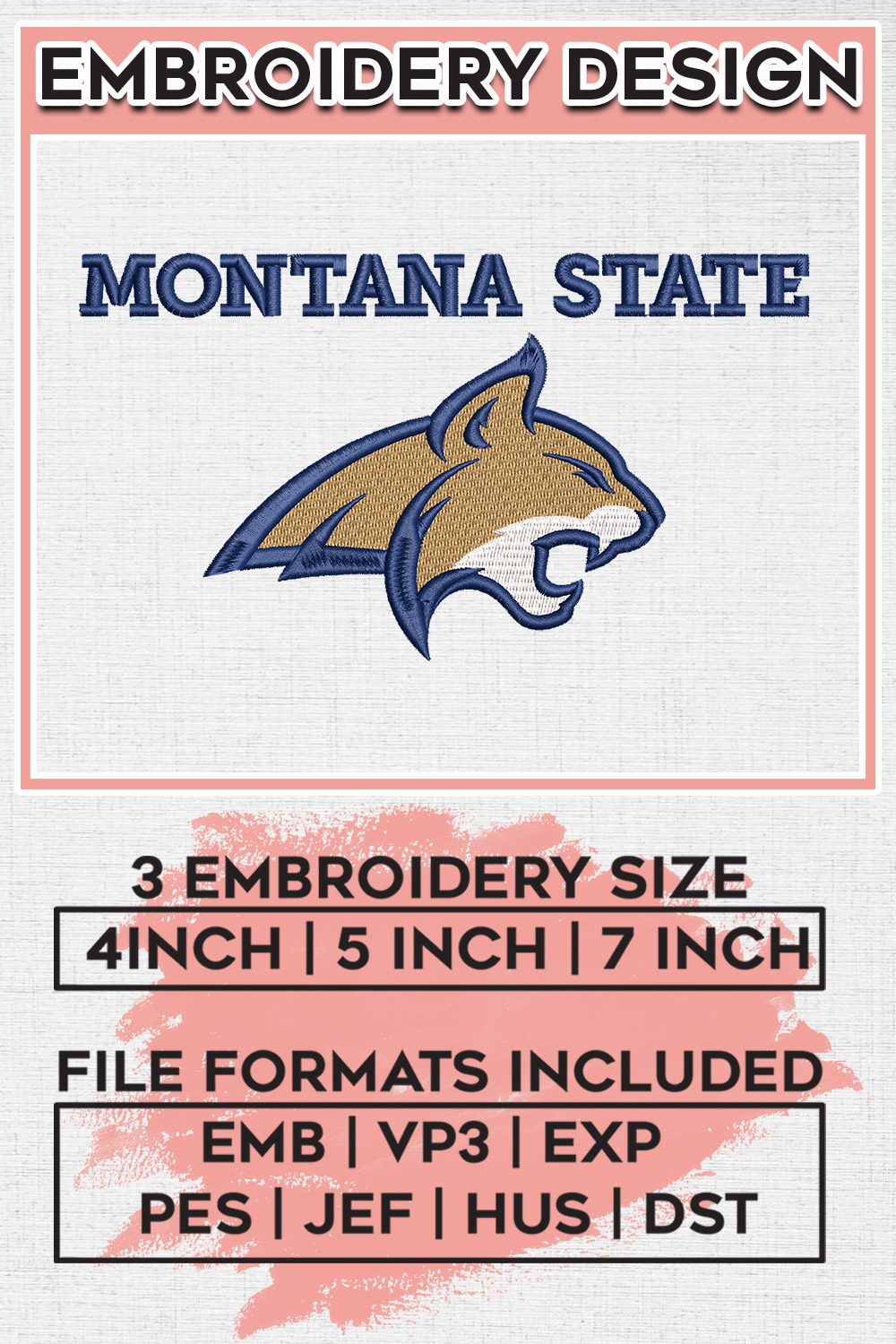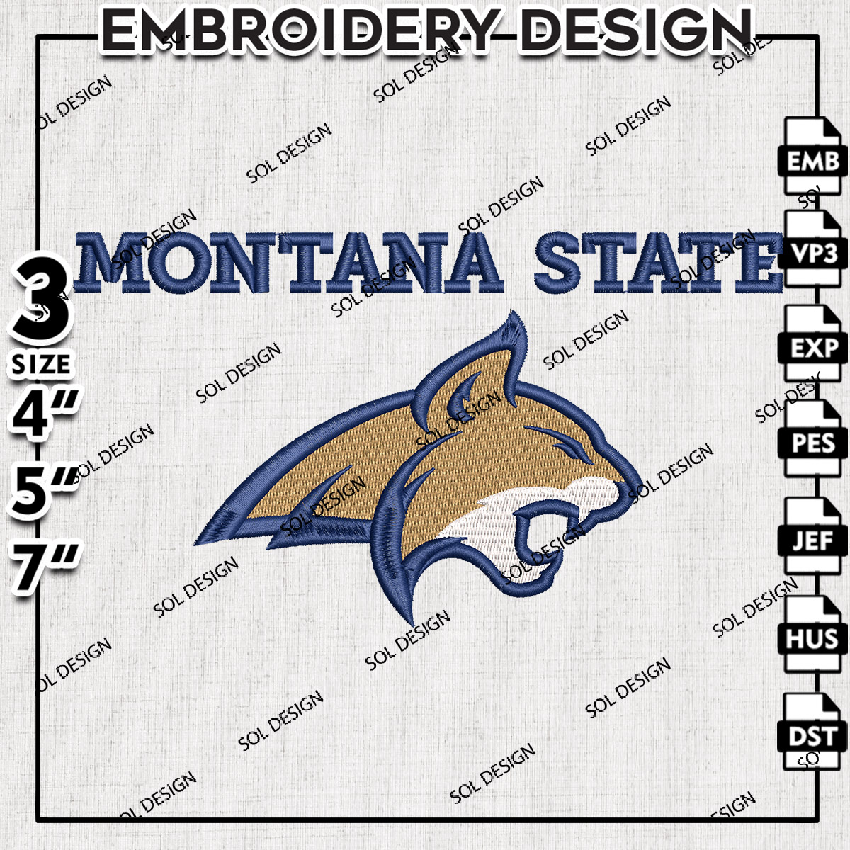 NCAA Montana State College Football Team Logo Embroidery Designs, NCAA Montana State Bobcats Machine Embroidery Files, NCAA Logo embroidery designs, NCAA Montana State Logo, Digital Download