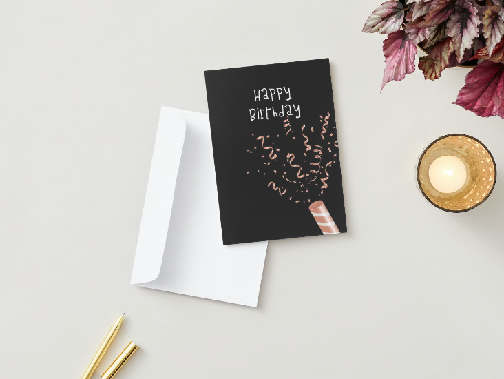 Crafted from premium materials and embellished with elegant details, this card is a refined and stylish choice for sending birthday wishes. With a blank interior, there is plenty of room to write a personalized message, allowing you to convey your heartfelt sentiments and best wishes to the recipient. Elevate their birthday celebration with our Elegant Birthday Card.