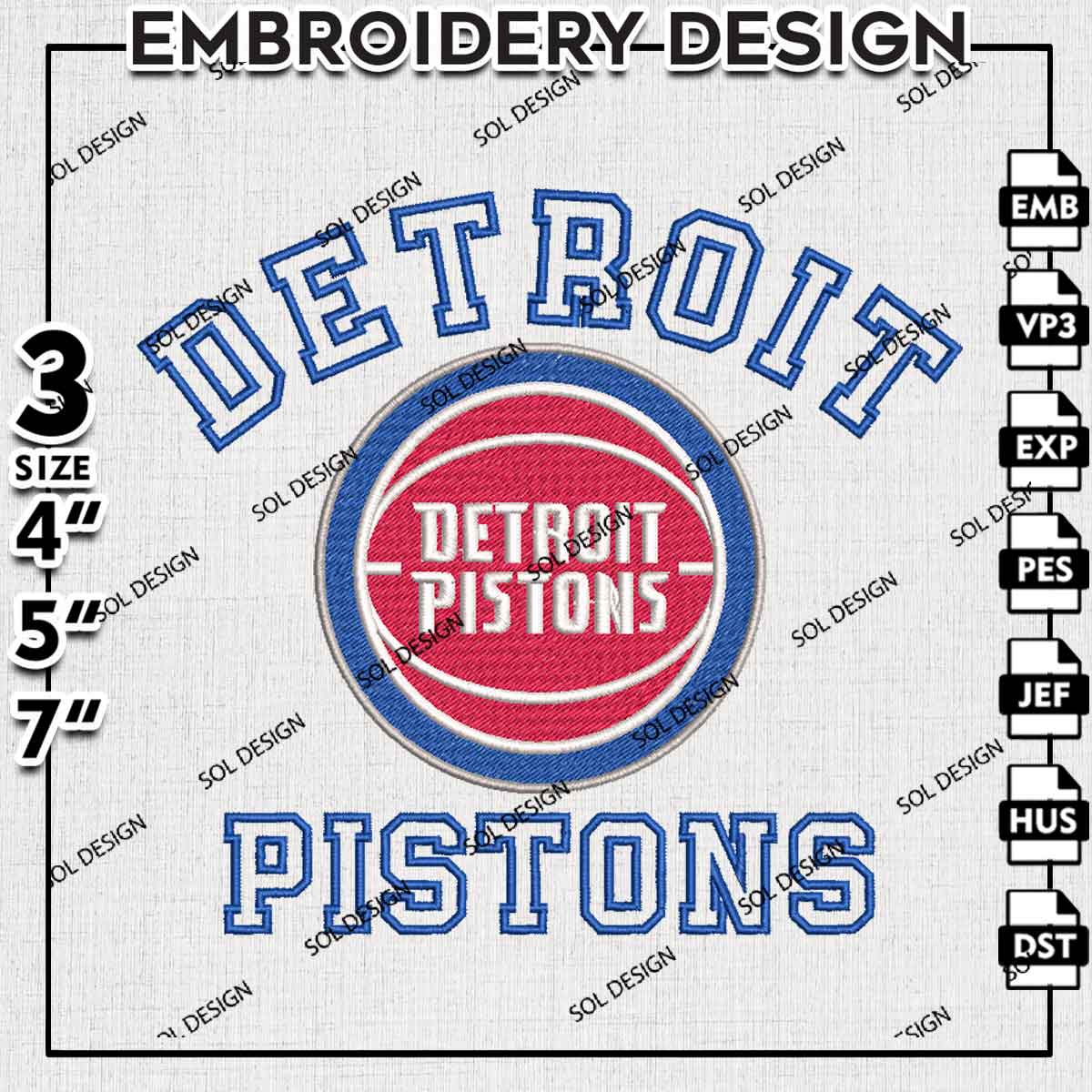NBA Detroit Pistons Team Word Mascot Logo Embroidery Designs, Detroit Pistons Basketball Team Embroidery Files, NBA Pistons Team Logo Embroidery, NBA Basketball Team Machine Embroidery Design, 3 sizes, Digital Download