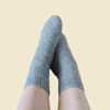 360–600m or 390–660 yards of 4ply/fingering weight sock yarn. NB: because of the stitch pattern, these socks will use about 25% more yarn than usual. The sample is in a handspun, fingering weight Romney x Corriedale yarn made with 3 plies.