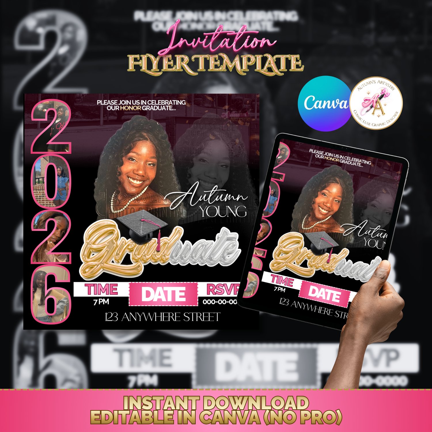 Celebrate your graduate in style with this editable Graduation Invitation Canva Template.