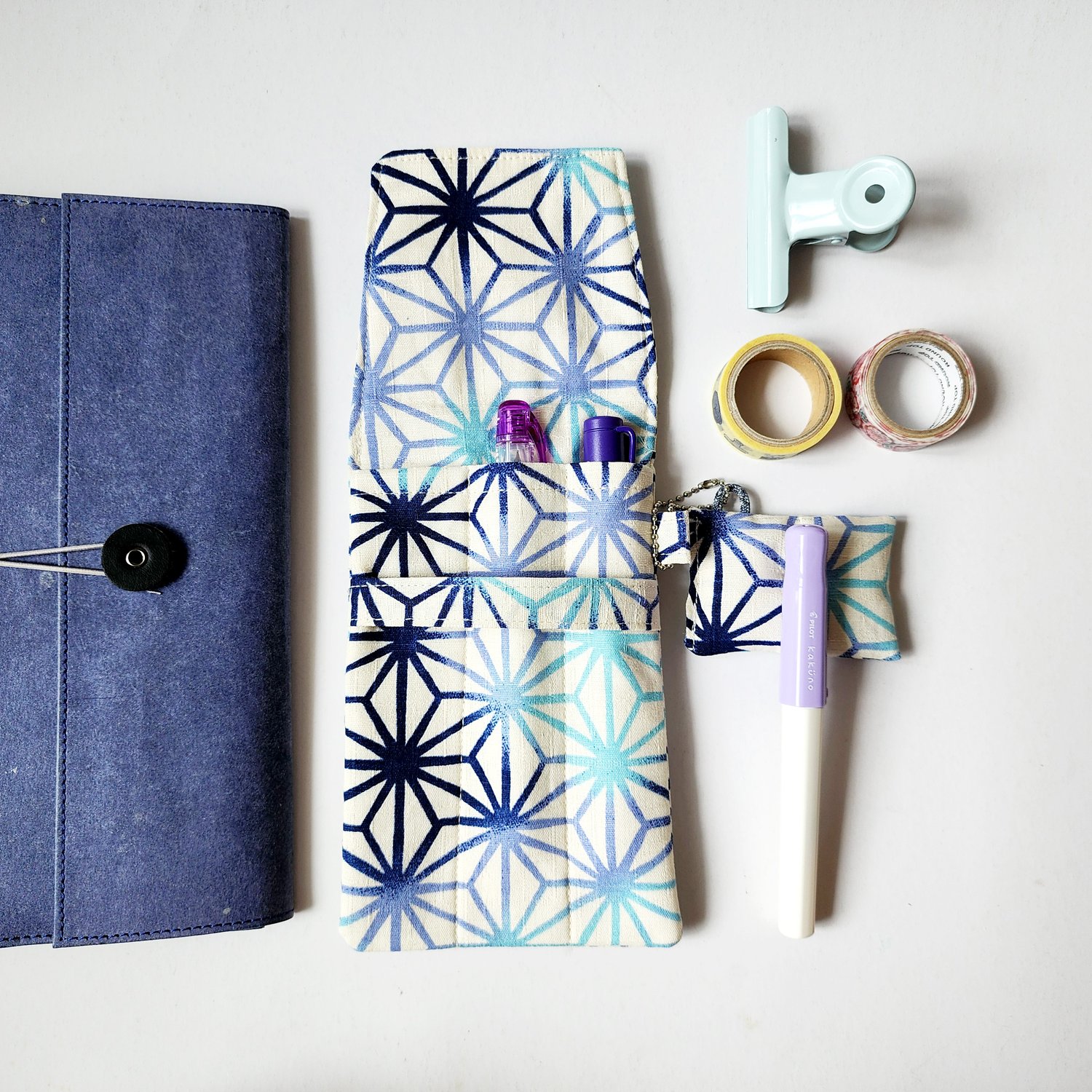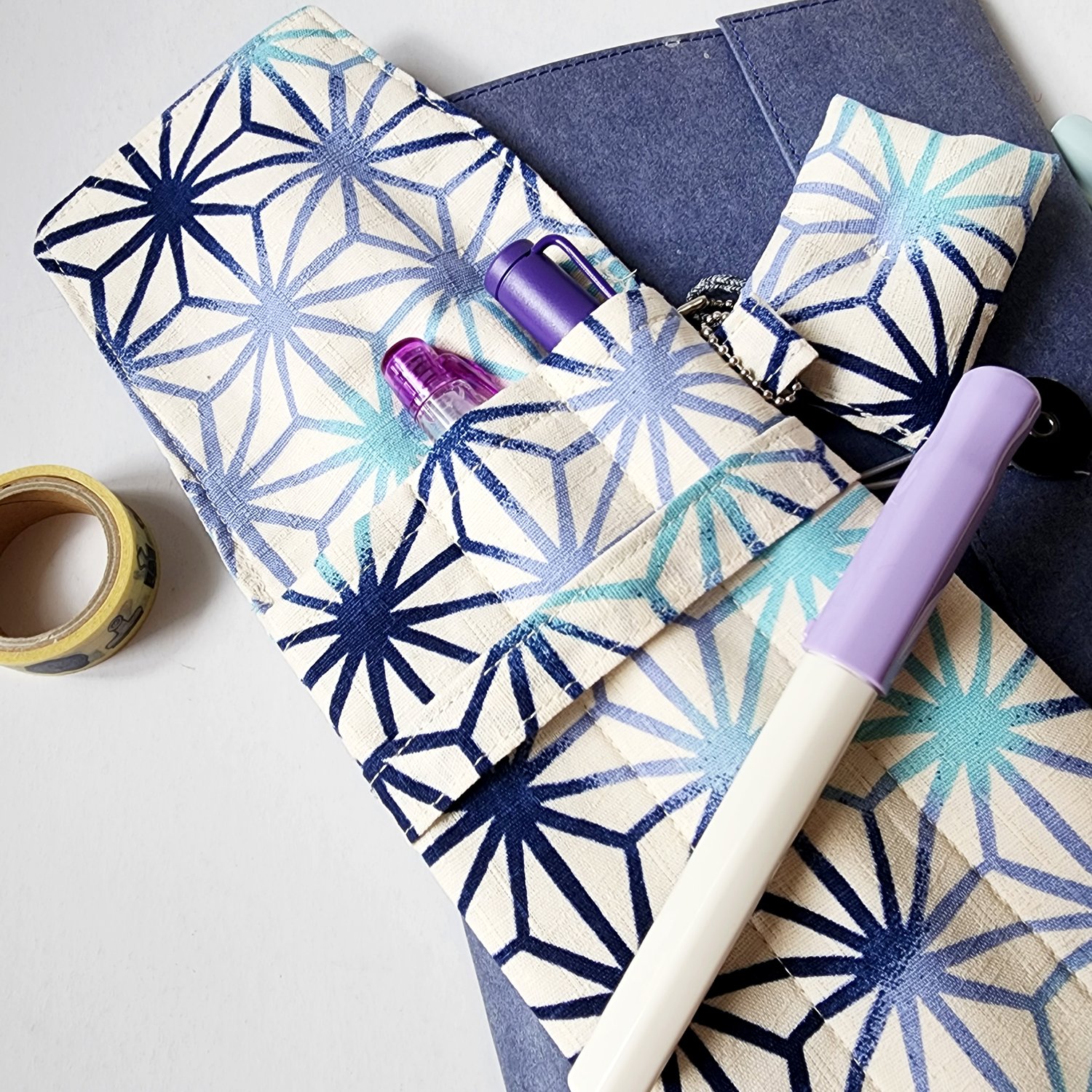 White&Blue Asanoha Japan Triple Fountain Pen Case