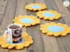 I designed this pattern with a heart full of sorrow and desiring to support the people of Ukraine. As a Ukrainian symbol of identity, sunflowers indicate the power of sun, prosperity, well-being and peace. I hope you will enjoy making these coasters.