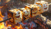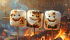 Happy toasted marshmallows smile over glowing campfire embers