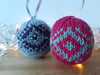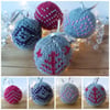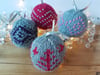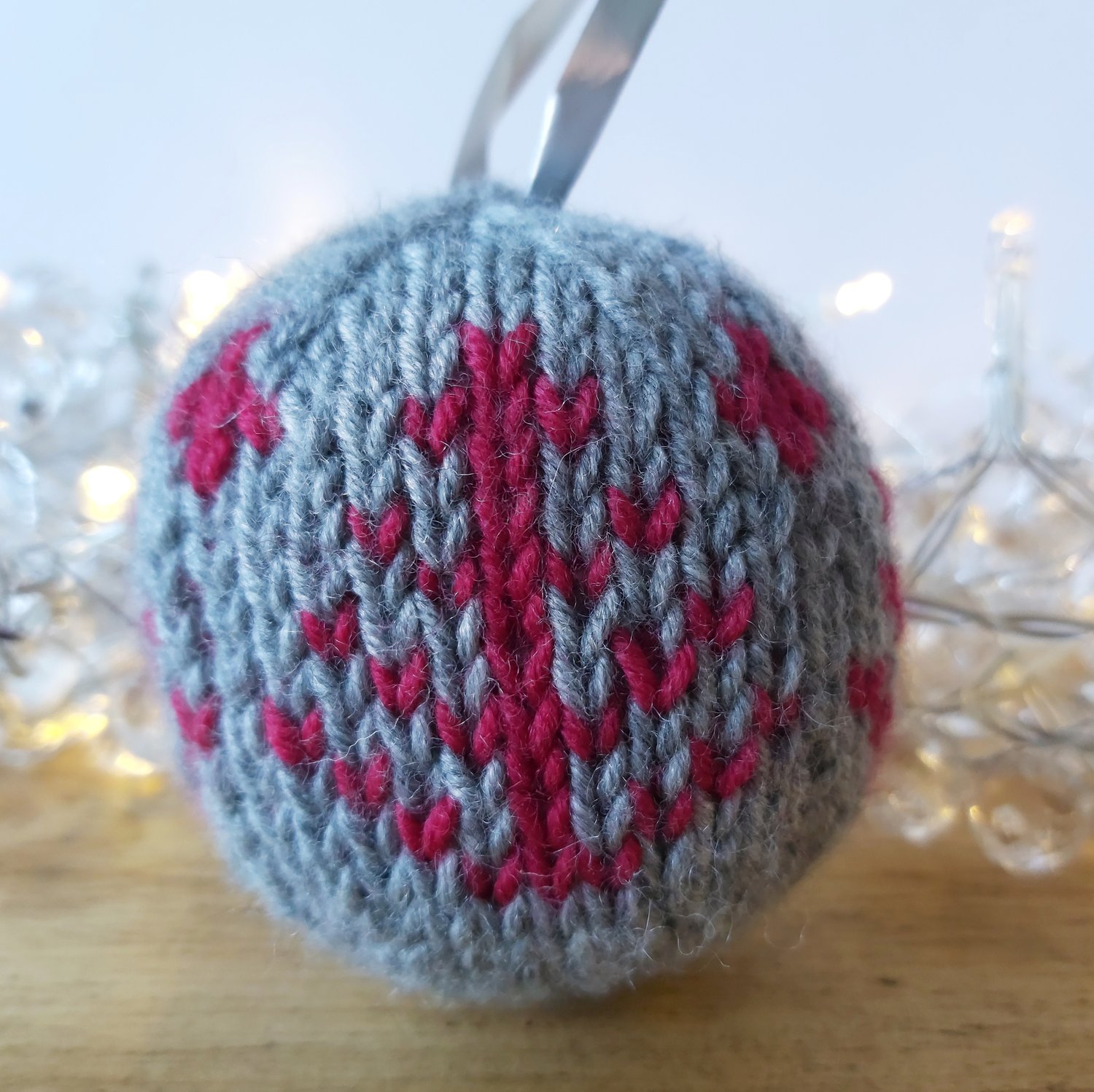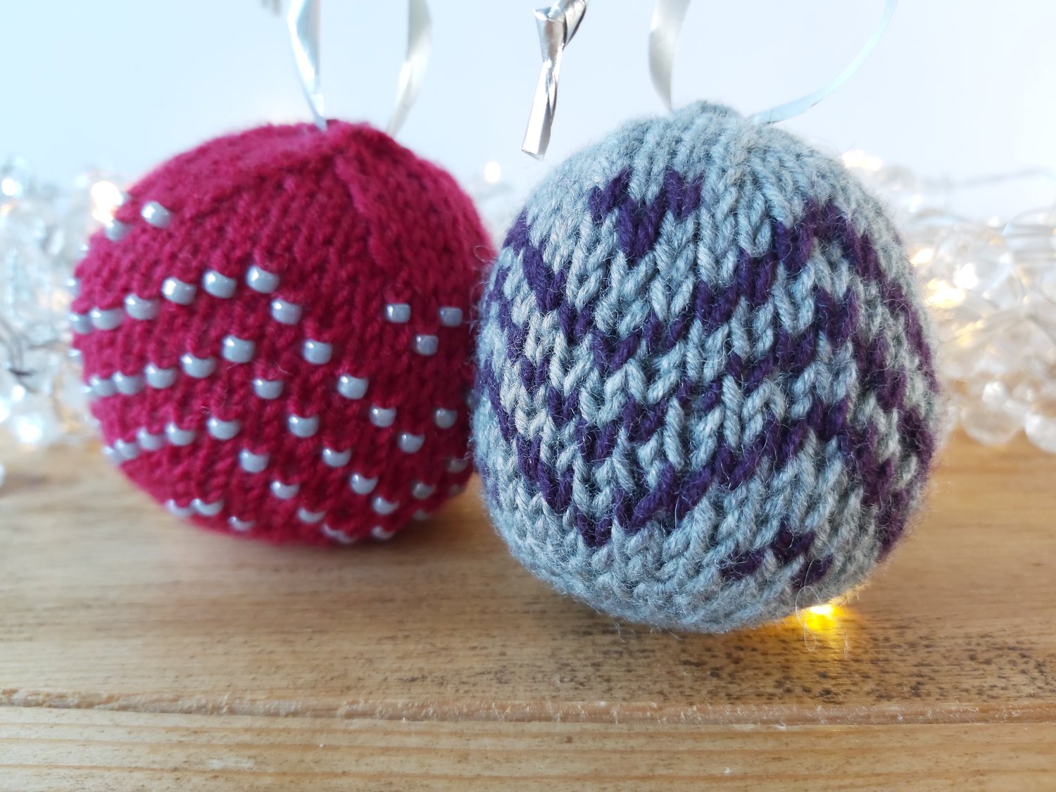 Fun little Christmas balls to decorate your home or tree. These little balls are worked in the round using either double pointed needles or a long circular needles (magic loop technique).