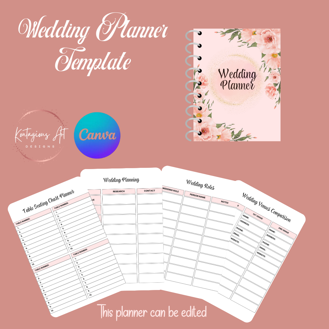 Plan your dream wedding with this wedding planner. This 8.5 x 11 inch 65-page planner has different prompt guides to help make your wedding day the best day ever. You will receive a Word document file to download the template to Canva.