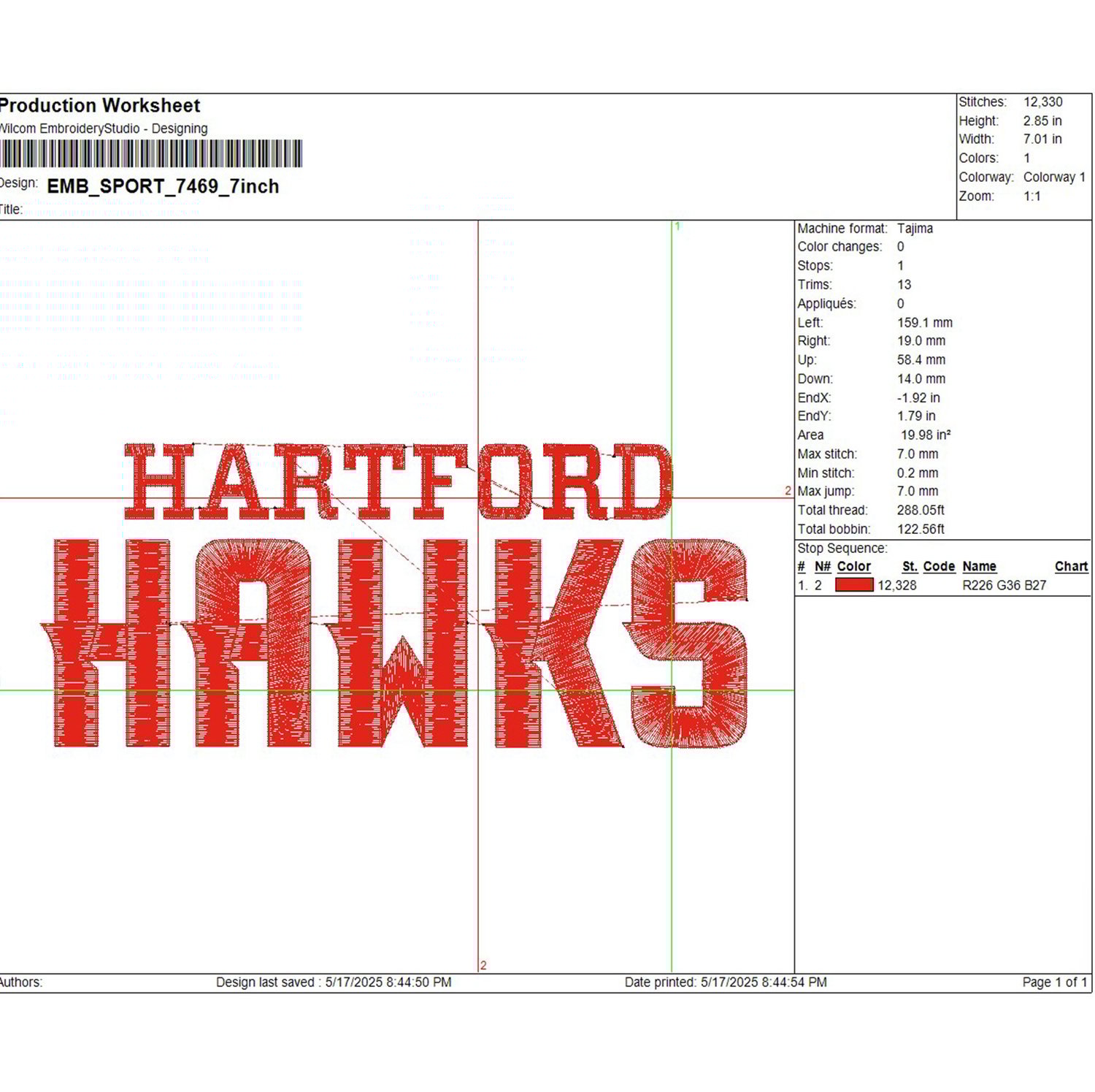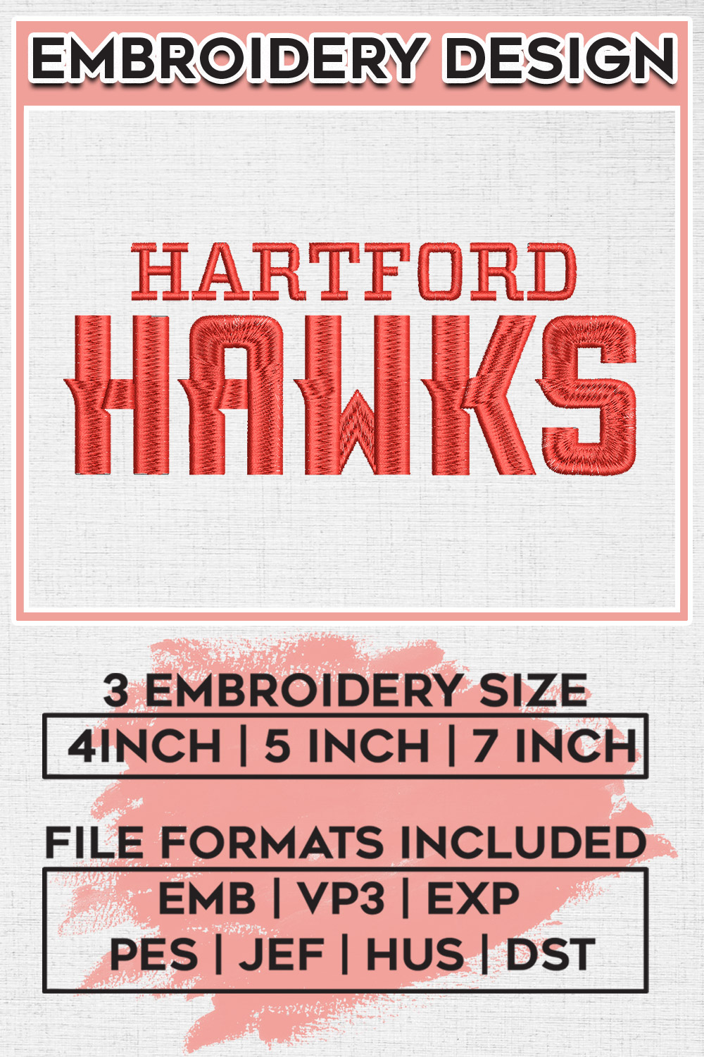 NCAA Hartford Hawks Football Team Wordmark Logo Embroidery Designs, NCAA Hartford Hawks Machine Embroidery Files, NCAA Logo embroidery designs, Ncaa Hartford Logo, Digital Download