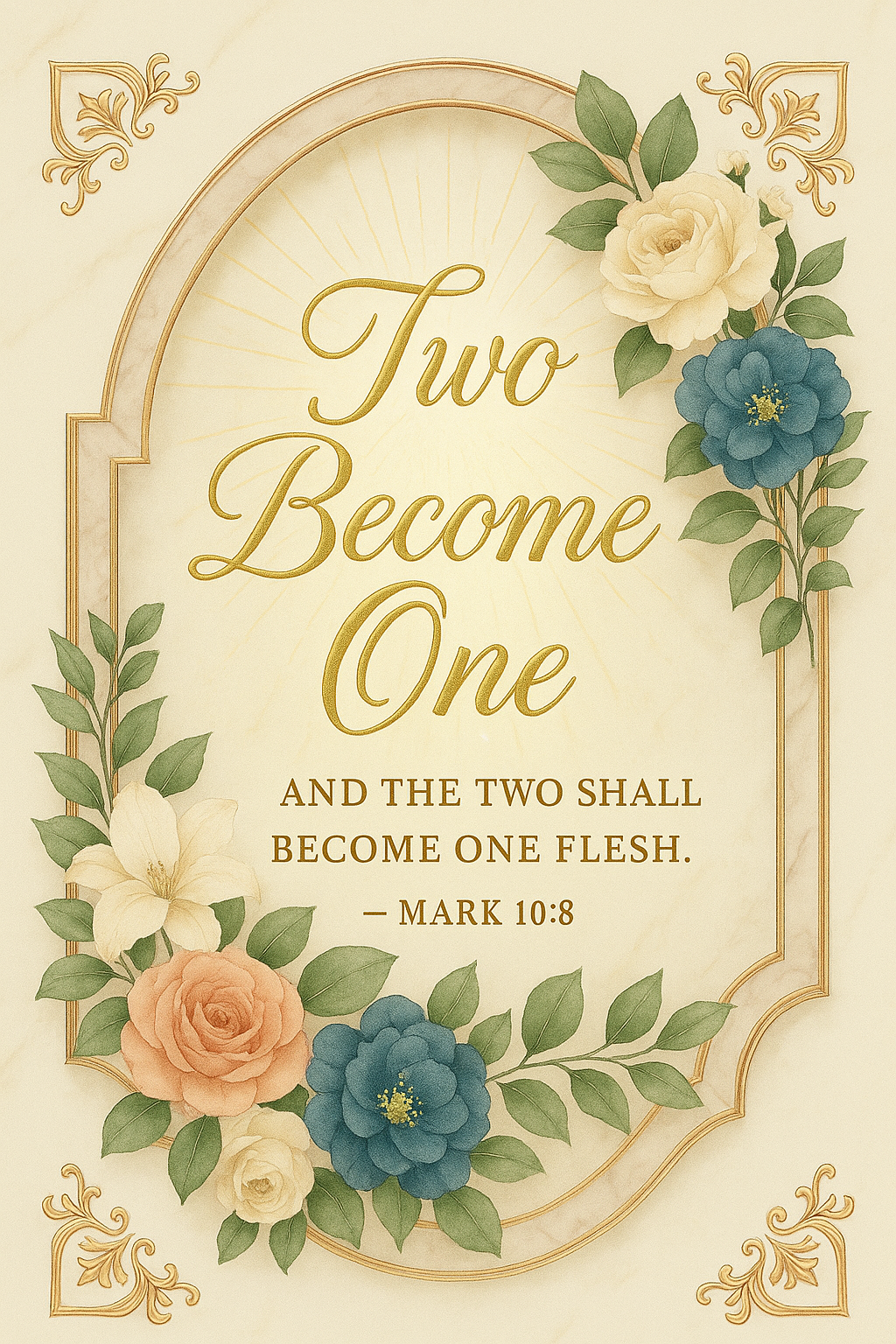 💐💍 Christian Marriage Wall Art – Mark 10:8 Floral Poster – Faith-Based Printable for Wedding, Anniversary & Ministry – Two Become One Theme