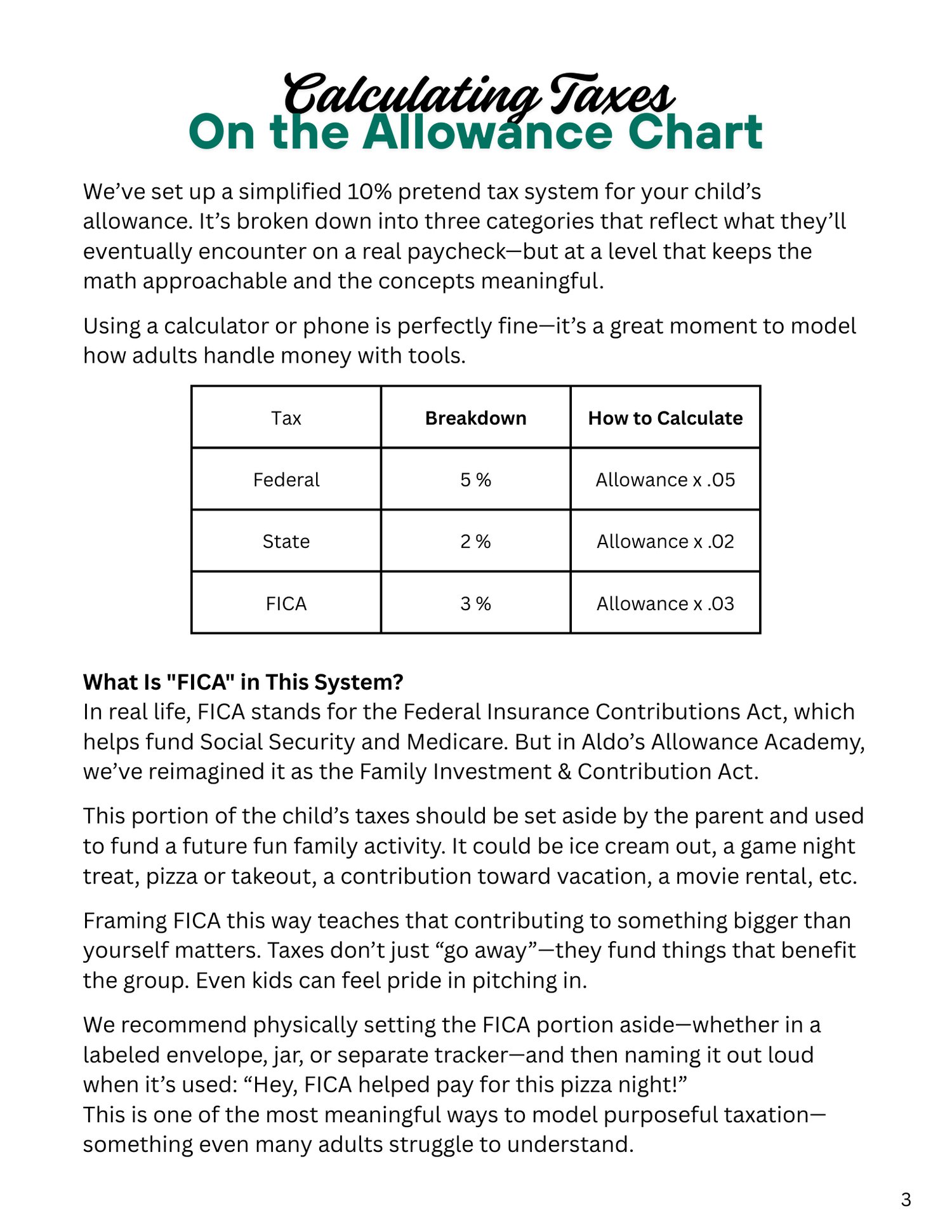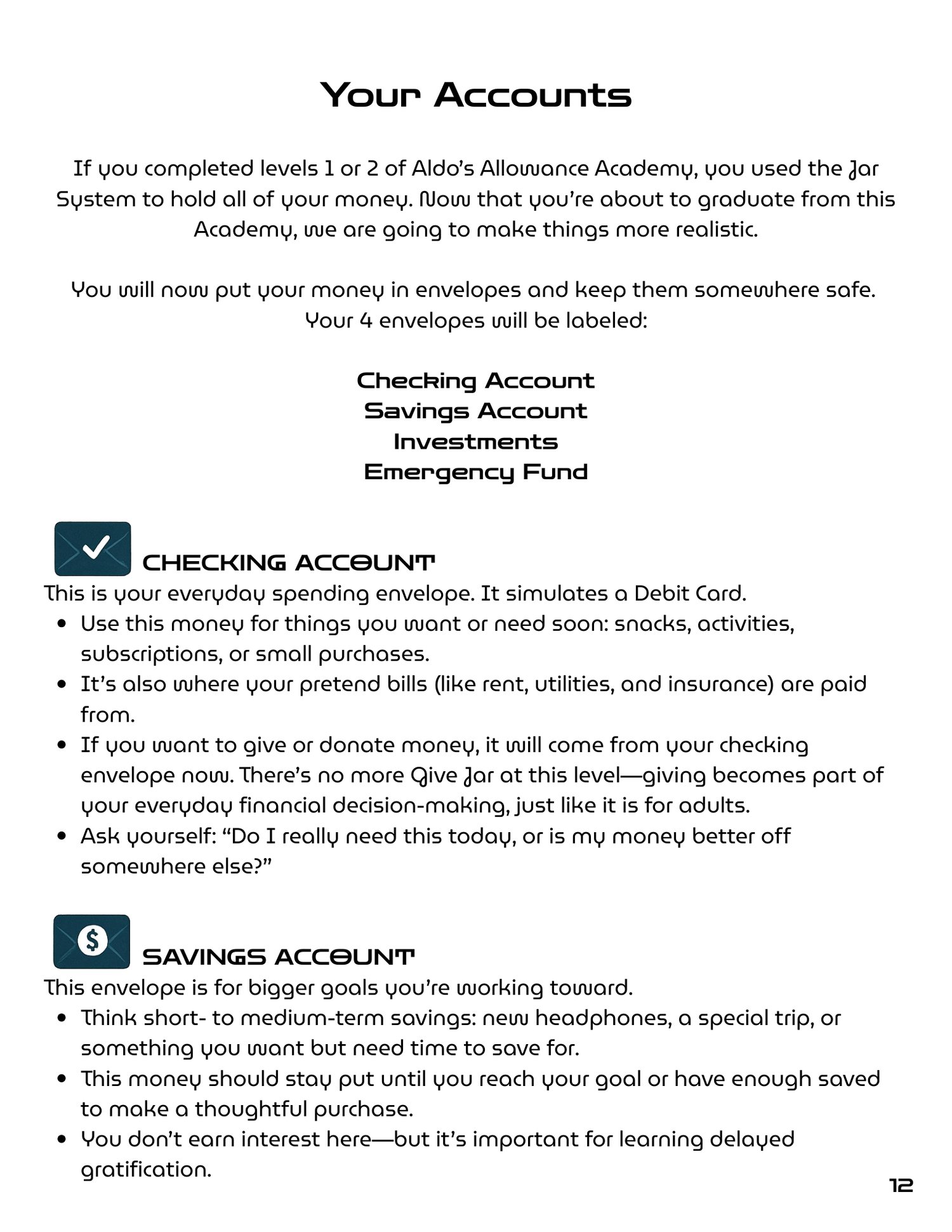 The most advanced level of Aldo's Allowance Academy teaches teens compound interest, credit scores, loan agreements, a 4-account money system, and how to prepare for their first real job. By the time they get their first paycheck, nothing on it will surprise them. Includes a Children's Guidebook and a Parent's Guide. Digital download — two PDFs delivered instantly after purchase.