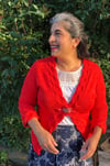 This 5 pattern collection of garments and accessories is inspired by the Incense Route which went through the Arabian Peninsula, crossing the seaside areas, as well as the mountains and desert. It includes two garments, a rectangular stole, a shoulder hugging shawl, and pair of fingerless mitts. It a collaboration with Malabrigo Yarn for their Malabrigo Freelance Pattern Project. Each piece is named after a particular stop on the route or a tribe that was involved in it. They are designed with certain features from the art, textiles, and even climate and terrain of these people and places. These garments and accessories have fairly simple lines, with more interesting construction, using color work and cables to communicate these design elements. The colors of this collection reflect the bright colors found in textiles and art throughout the Arab world, and specifically in these locations and tribes.