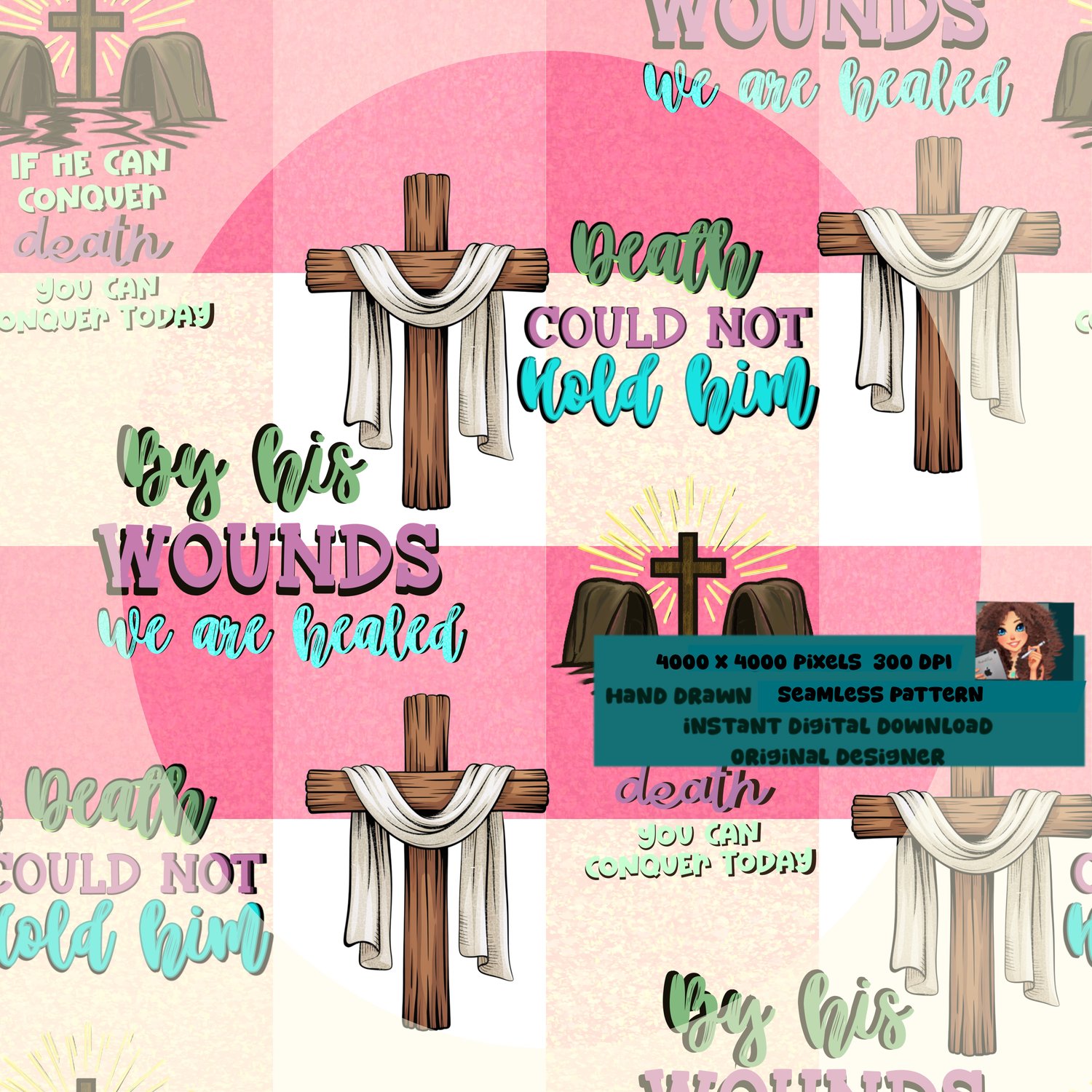 Resurrection Seamless on strawberry Shortcake Gingham