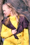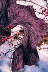 A new take on the ruffle shawl, Rufflebye is a one-skein, reversible wrap worked sideways in three garter stitch wedges which cleverly intersect to change the knitting direction. Increases and decreases create the shape from tip to tip, while two sets of short rows throughout form the crescent shape and the gently ruffled edging.