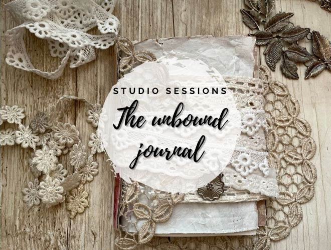 Join me in the studio as I show you how I drew inspiration from a carboard box, a pile of lace, old earrings, traveler’s notebooks, and a fun journal structure to come up with a delightfully tactile junk journal.