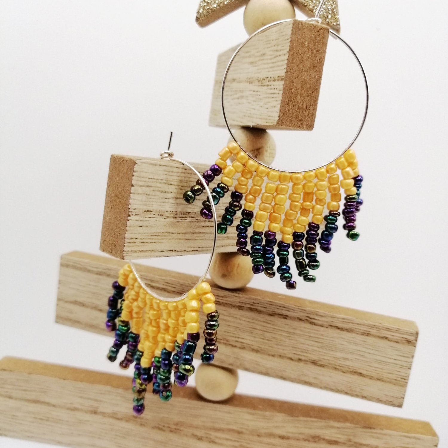 Acești cercei handmade sunt creații unice, atent lucrate din margele fine de nisip, oferindu-le un aspect distinct și elegant. Cu această bijuterie, veți aduce cu siguranță un strop de culoare și originalitate oricărei ținute, subliniind stilul dumneavoastră distinct și aprecierea pentru creații handmade de calitate.