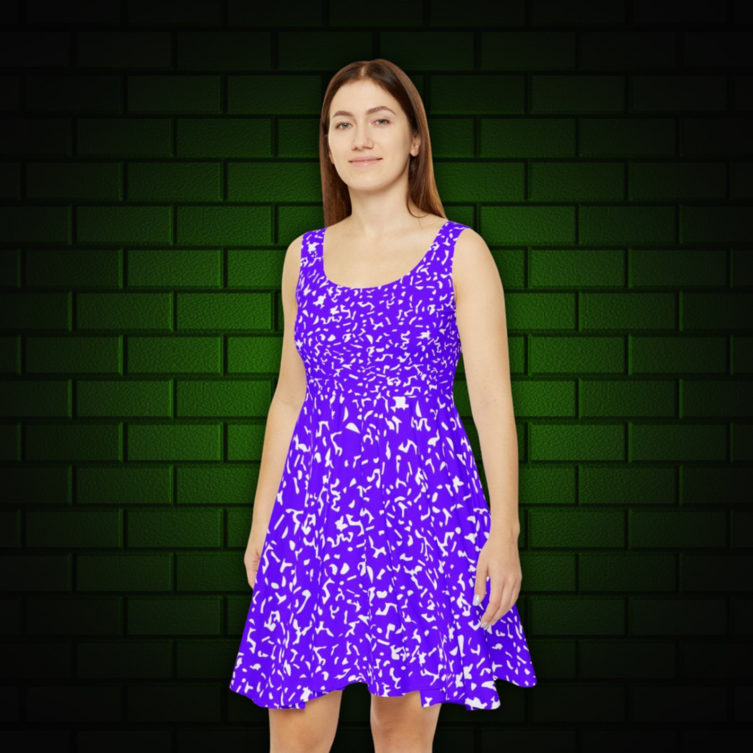 Purple Composition Notebook Women’s Skater Dress – Chic & Playful Summer Outfit for Parties, Picnics, and Everyday Style