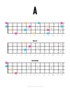 The notes from every chord in Kapp'n Song all laid out on fretboard diagrams. Each page includes a comparison of the voicings used in New Leaf and New Horizons. Notes are color coded and pages are designed with printability in mind.