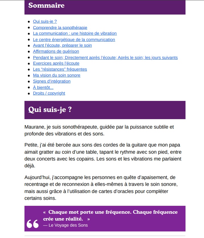 Tu recevras aussi un Ebook pour accompagner l'écoute de la capsule sonore, pour une expérience complète et profonde.