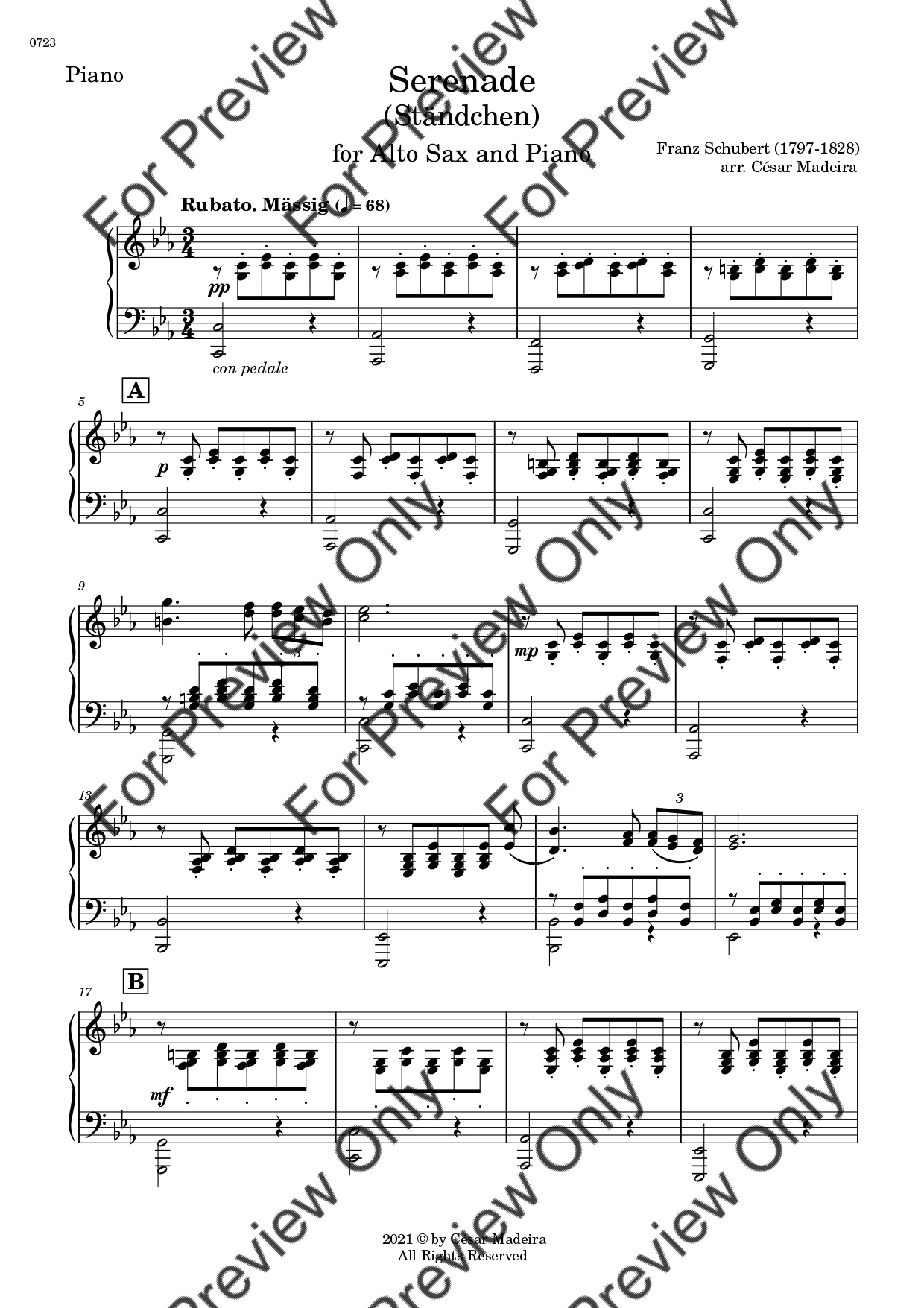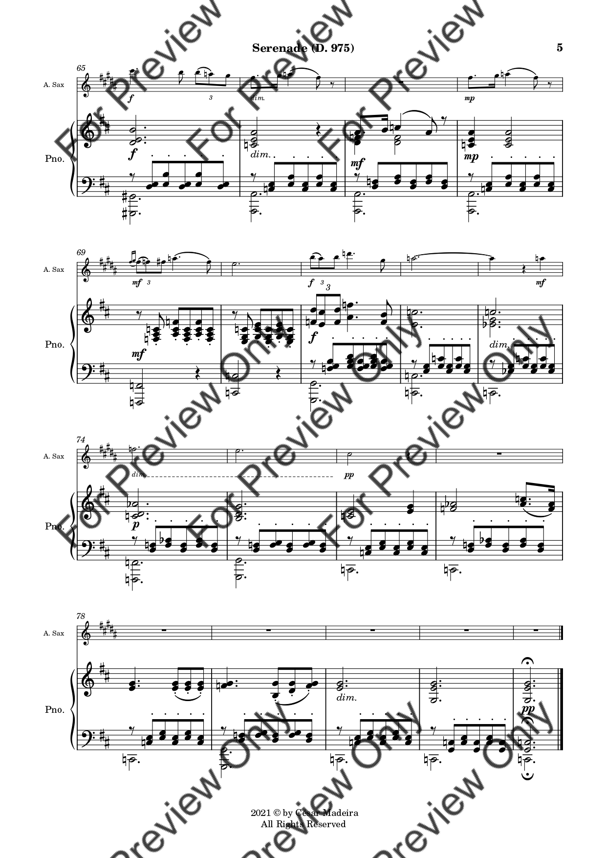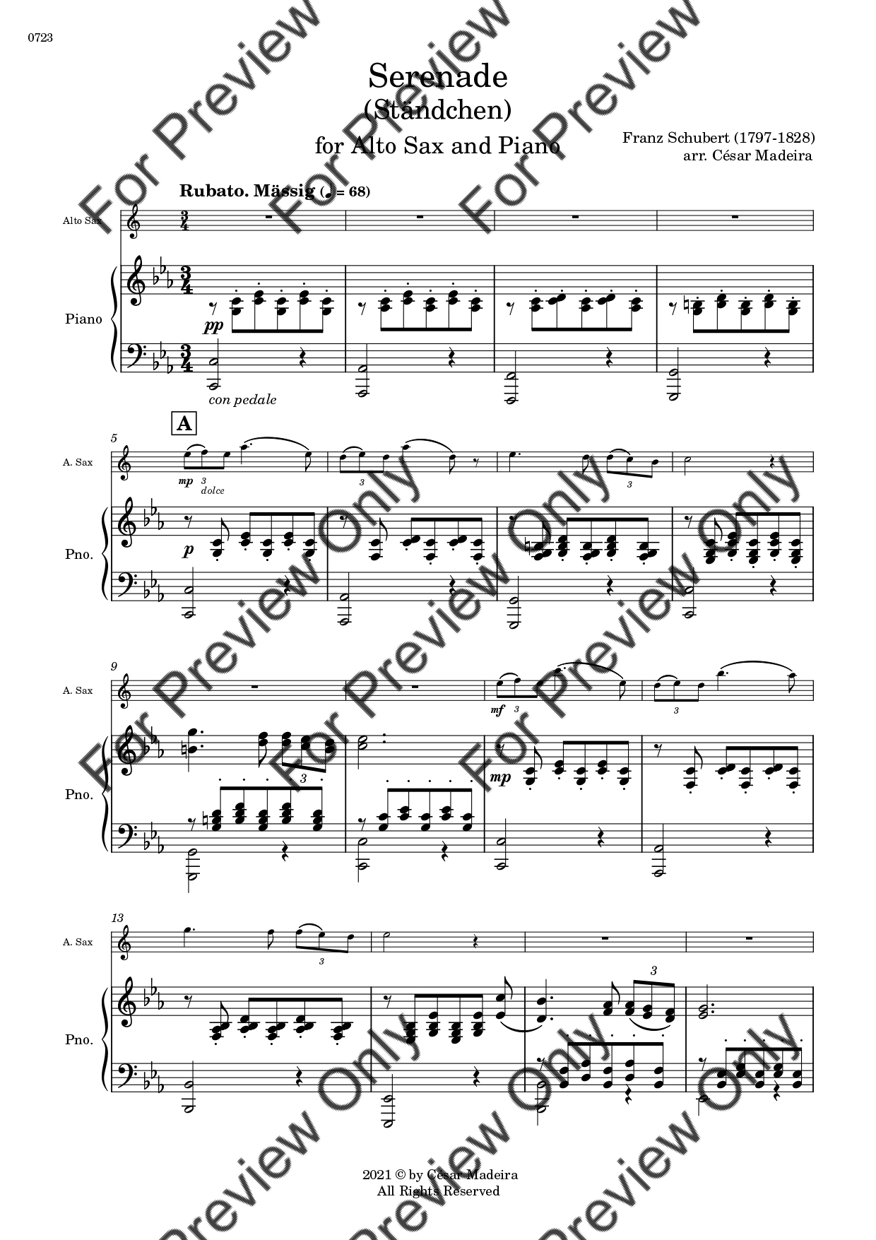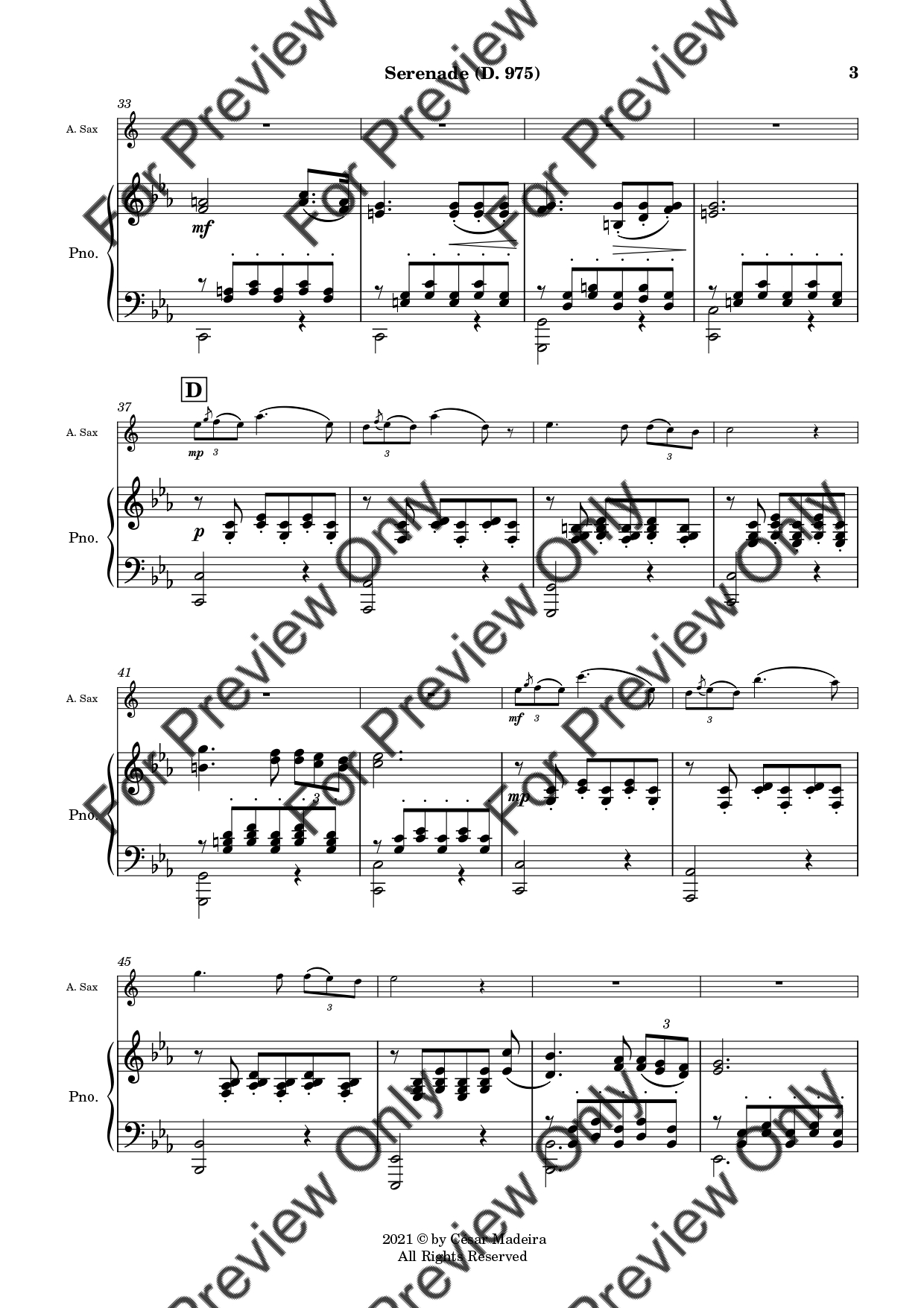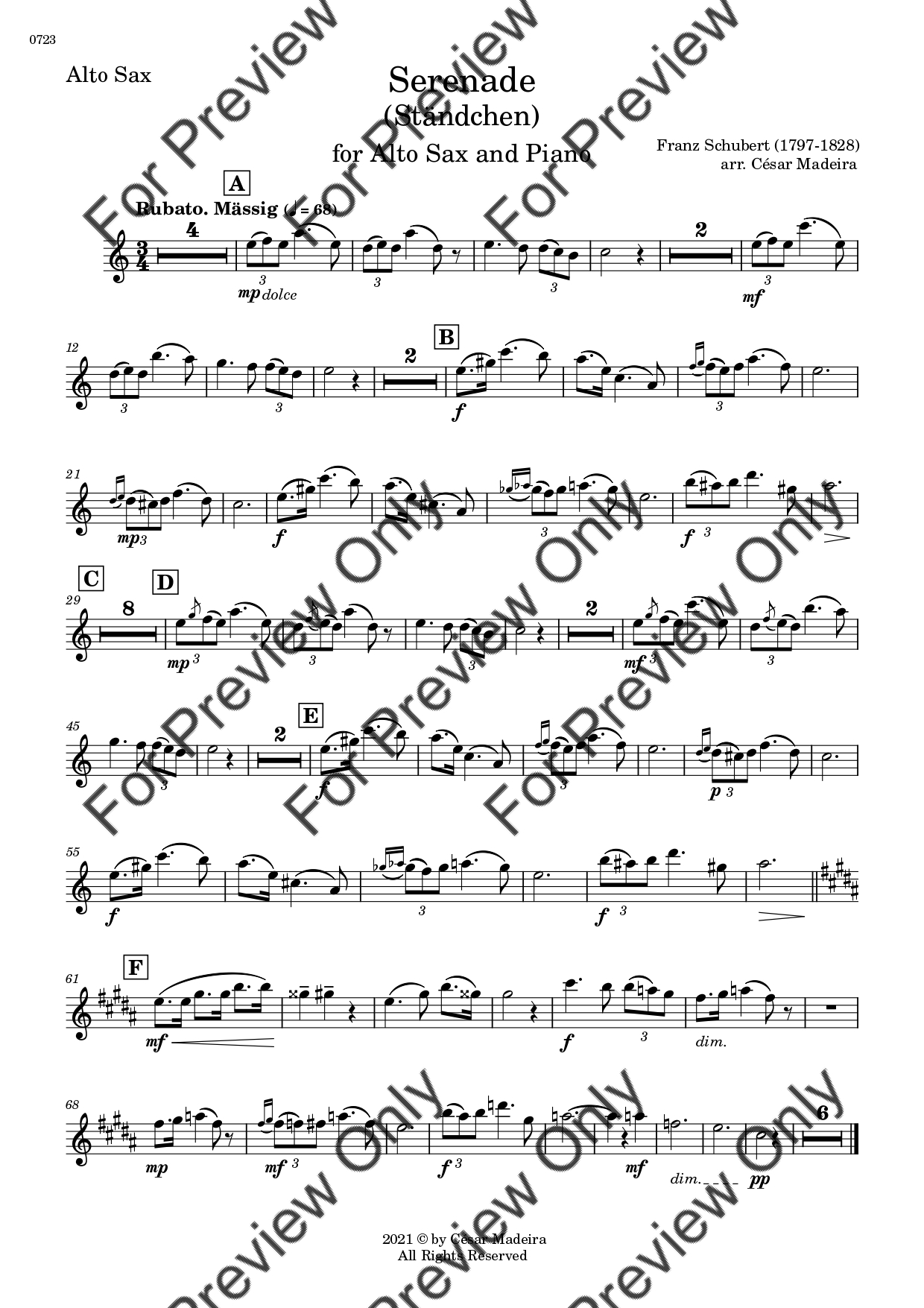 Serenade D.975 (Ständchen) by Franz Schubert. Arrangement for Alto Saxophone and Piano. With Full Score and Individual Parts. Have fun!