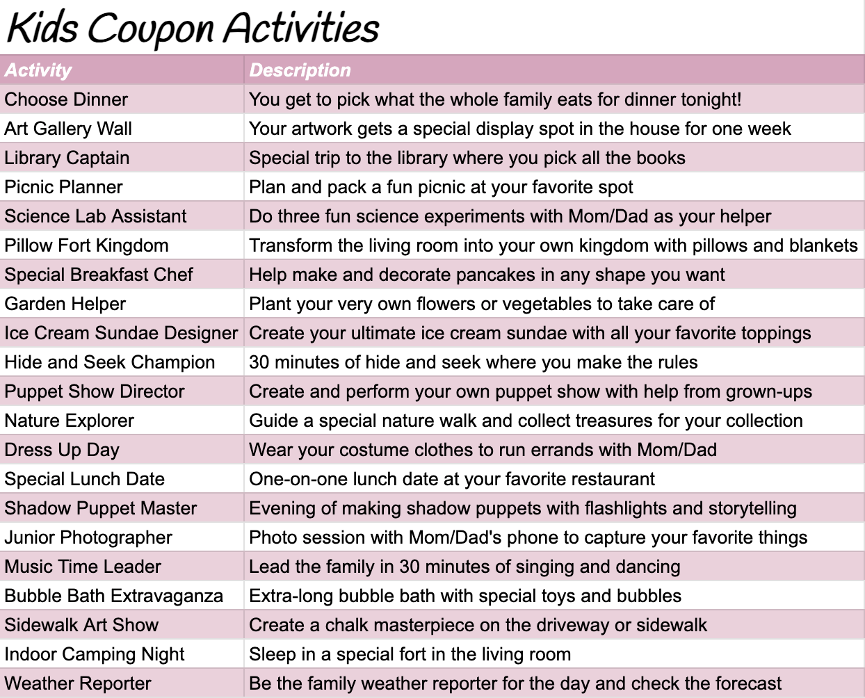 ✔ 14 pre-designed kids activity coupons with fun, screen-free ideas