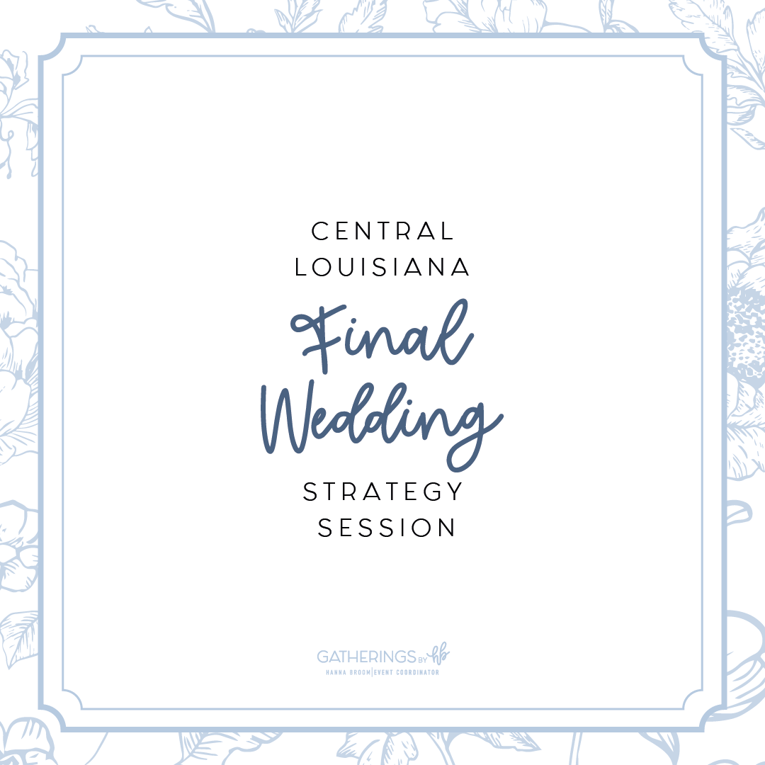 Our Final Wedding Strategy Session is a one-on-one virtual consultation designed for couples who have handled their own planning but want expert guidance in the final stretch.