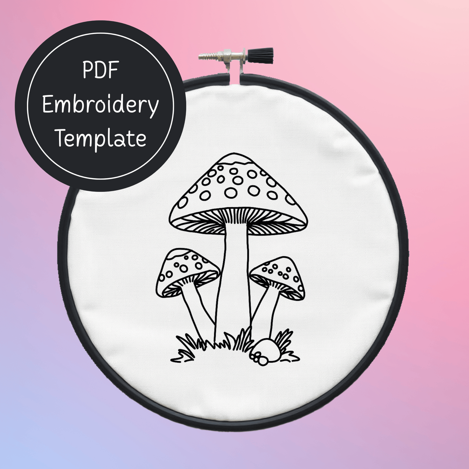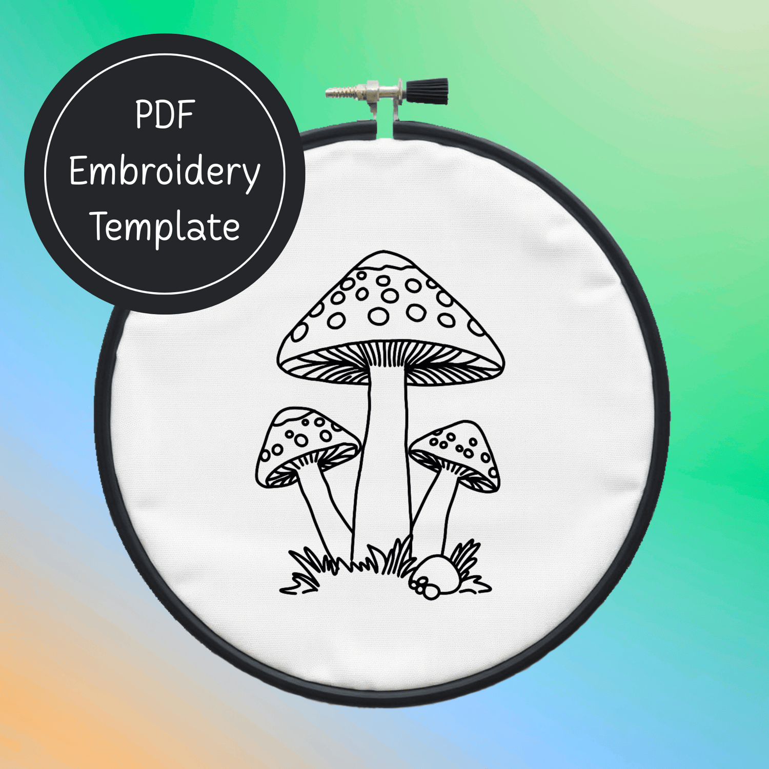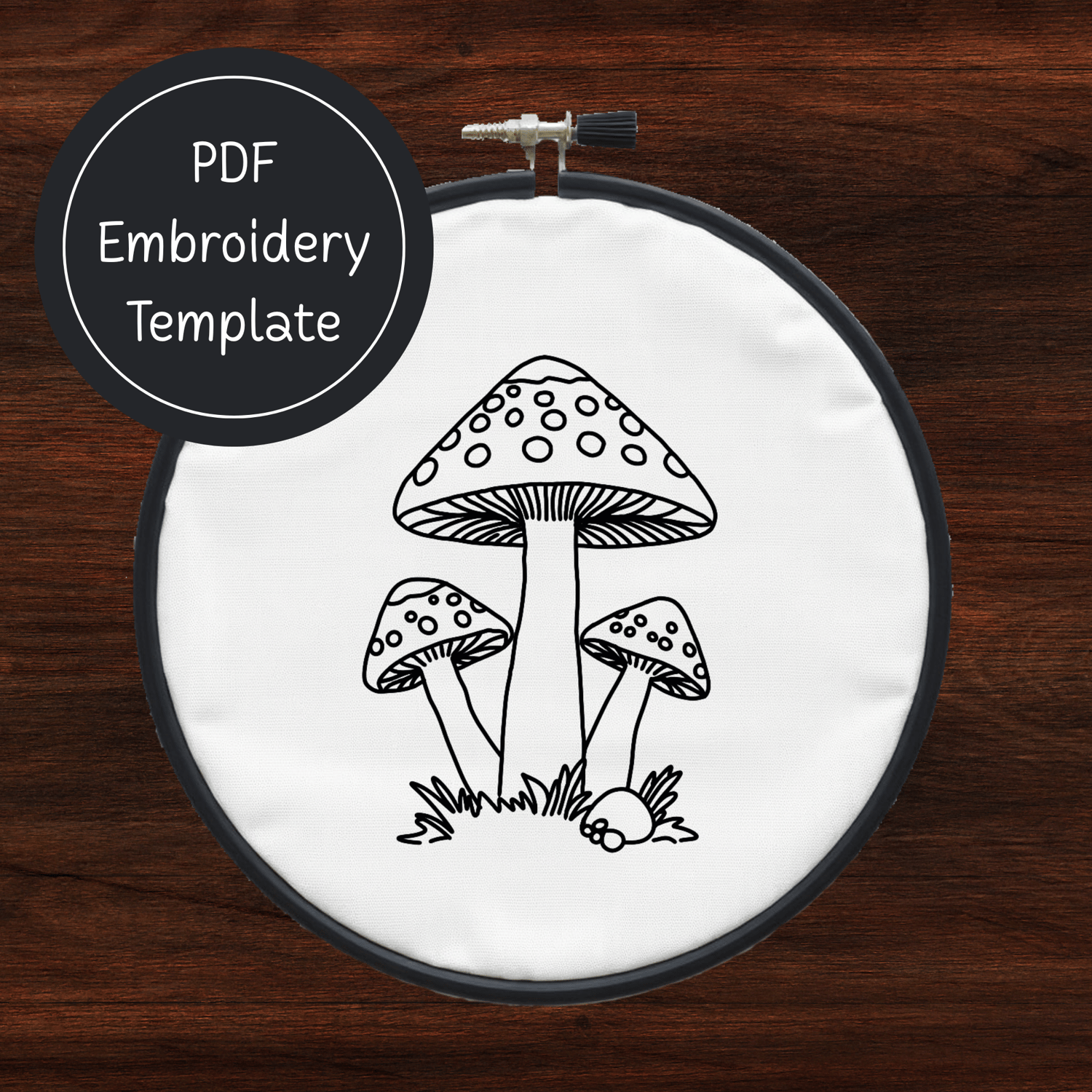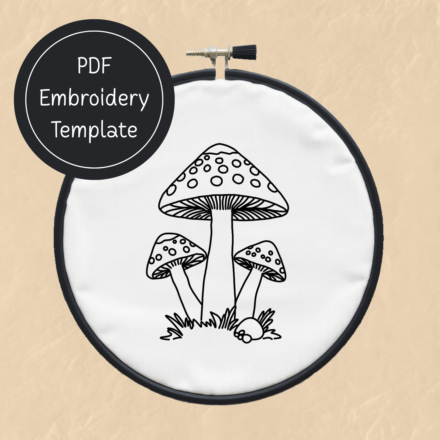 Mushroom Trio Embroidery Template PDF - DIY Fungi Design For Hand Stitching - Instant Download