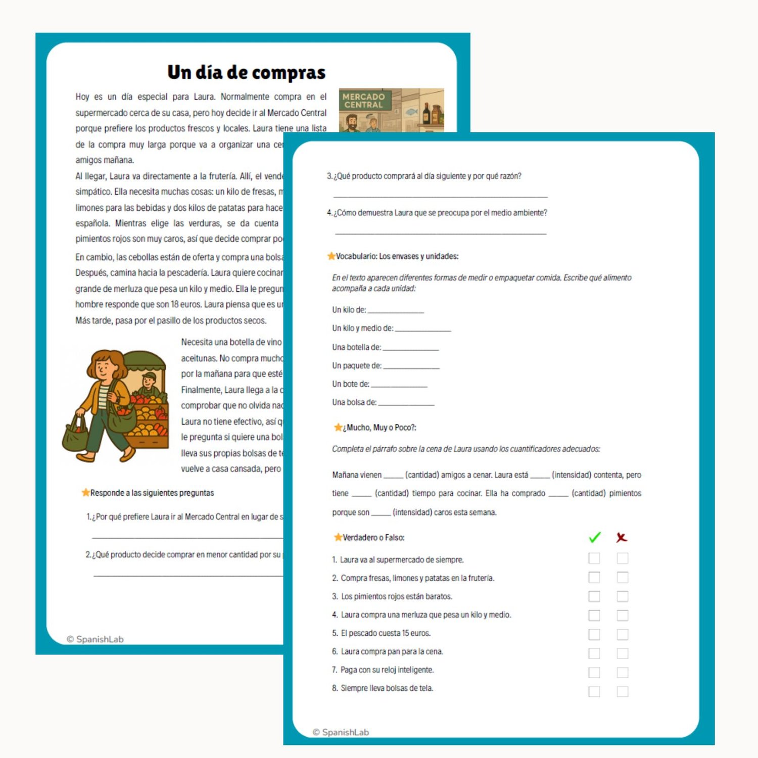 This A2 Spanish Reading Comprehension bundle includes authentic, engaging texts designed for adult and teen learners.