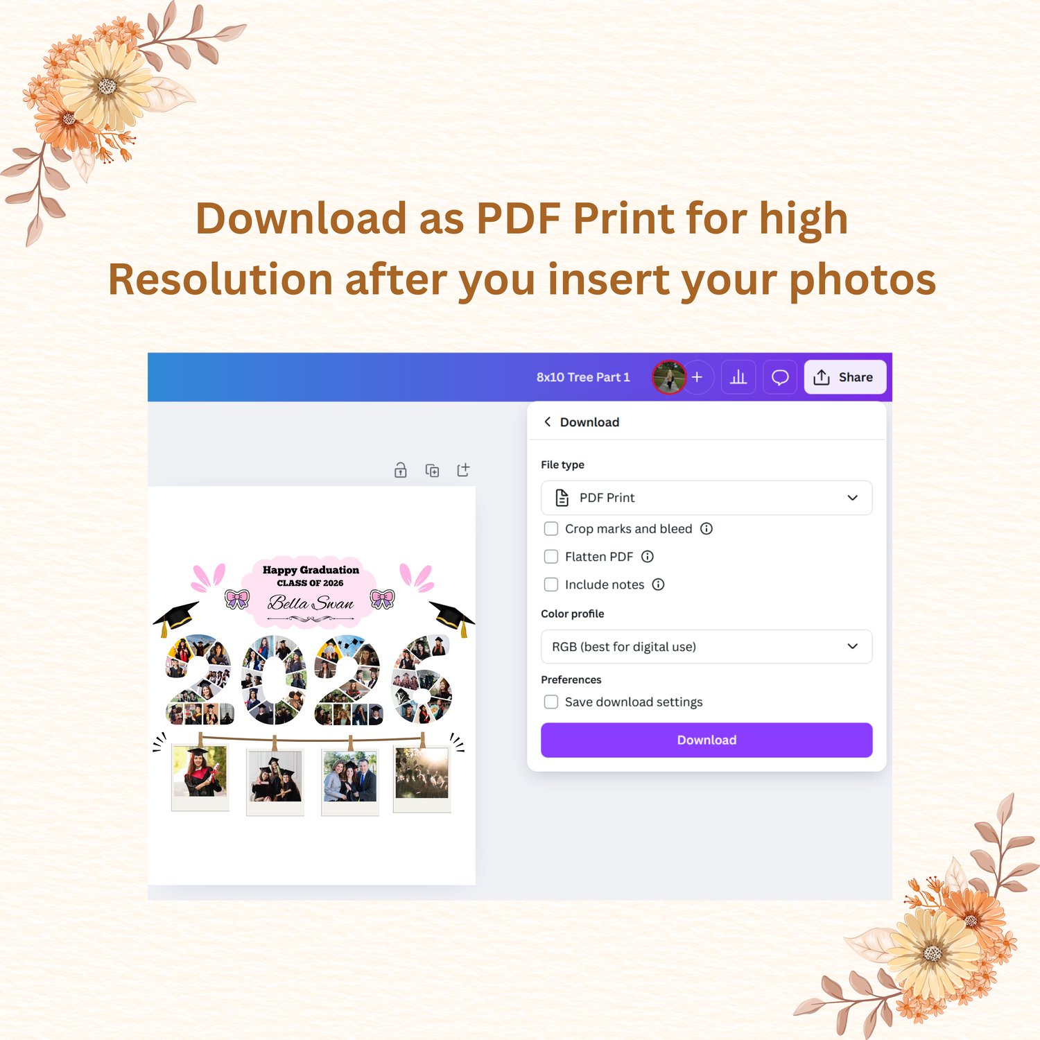 Editable Graduation Photo Collage Frame: Class of 2026 (Canva Template, Digital Download)