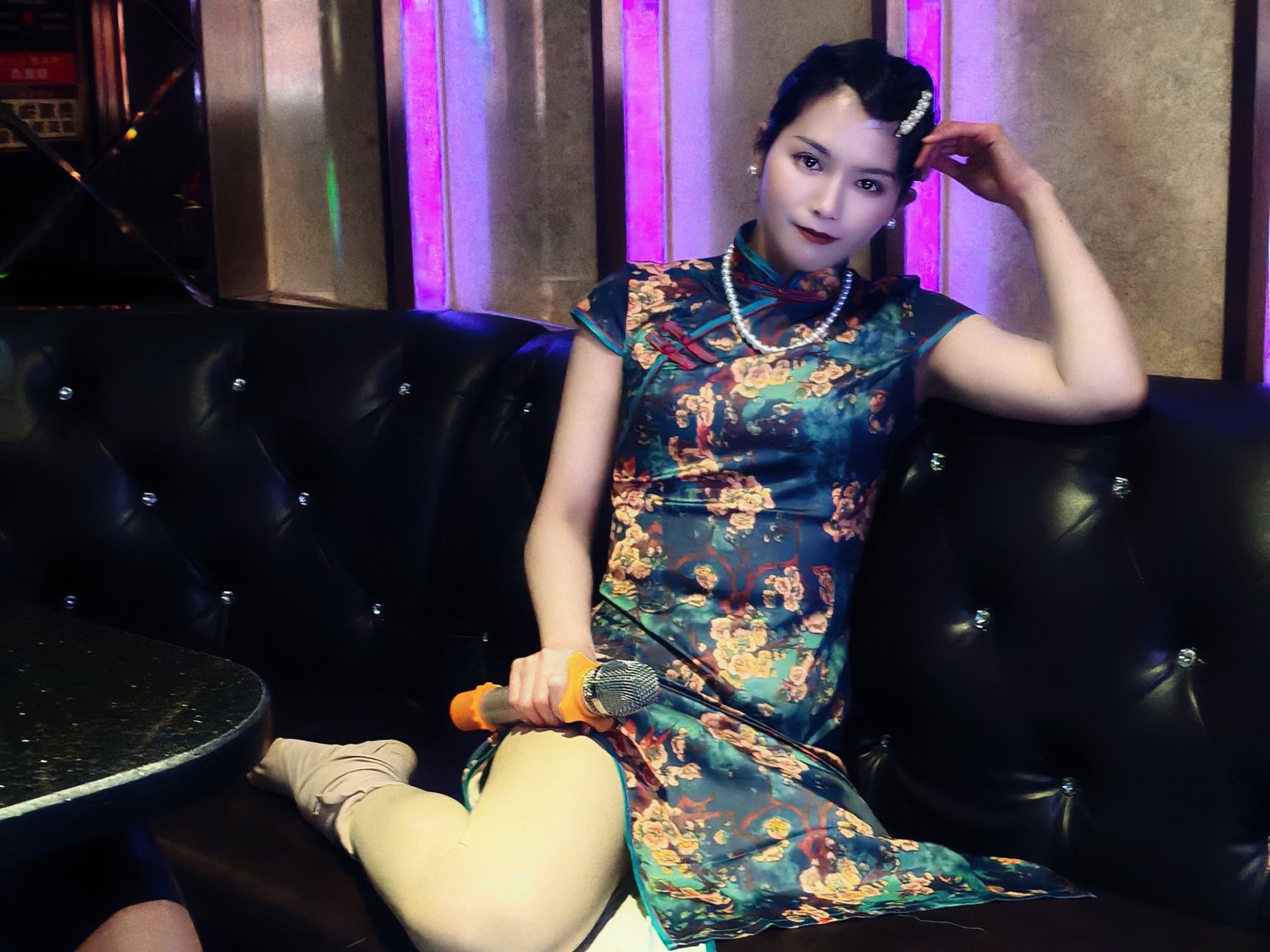 Alisa put on a beautiful cheongsam and invited her friends to sing together.